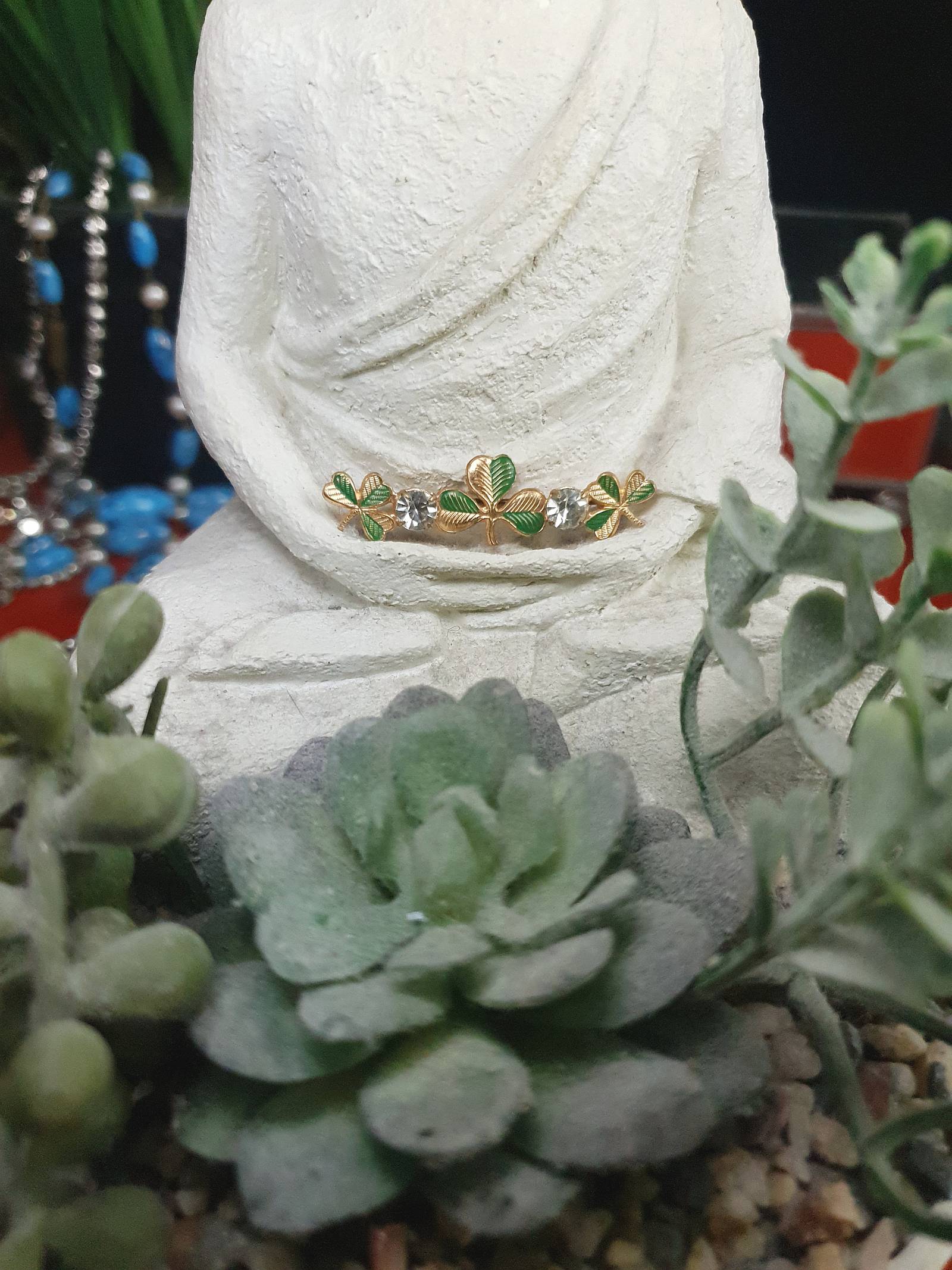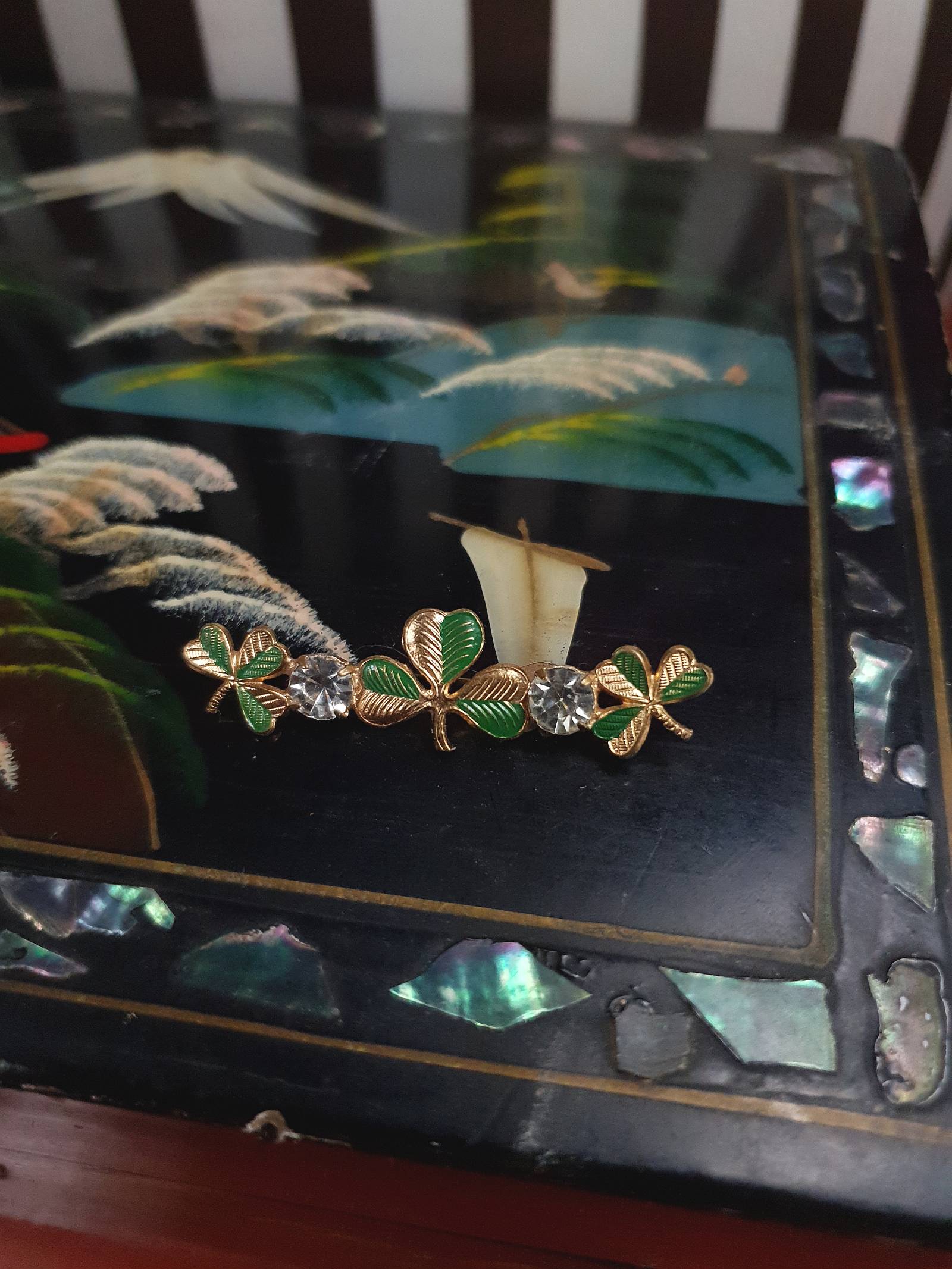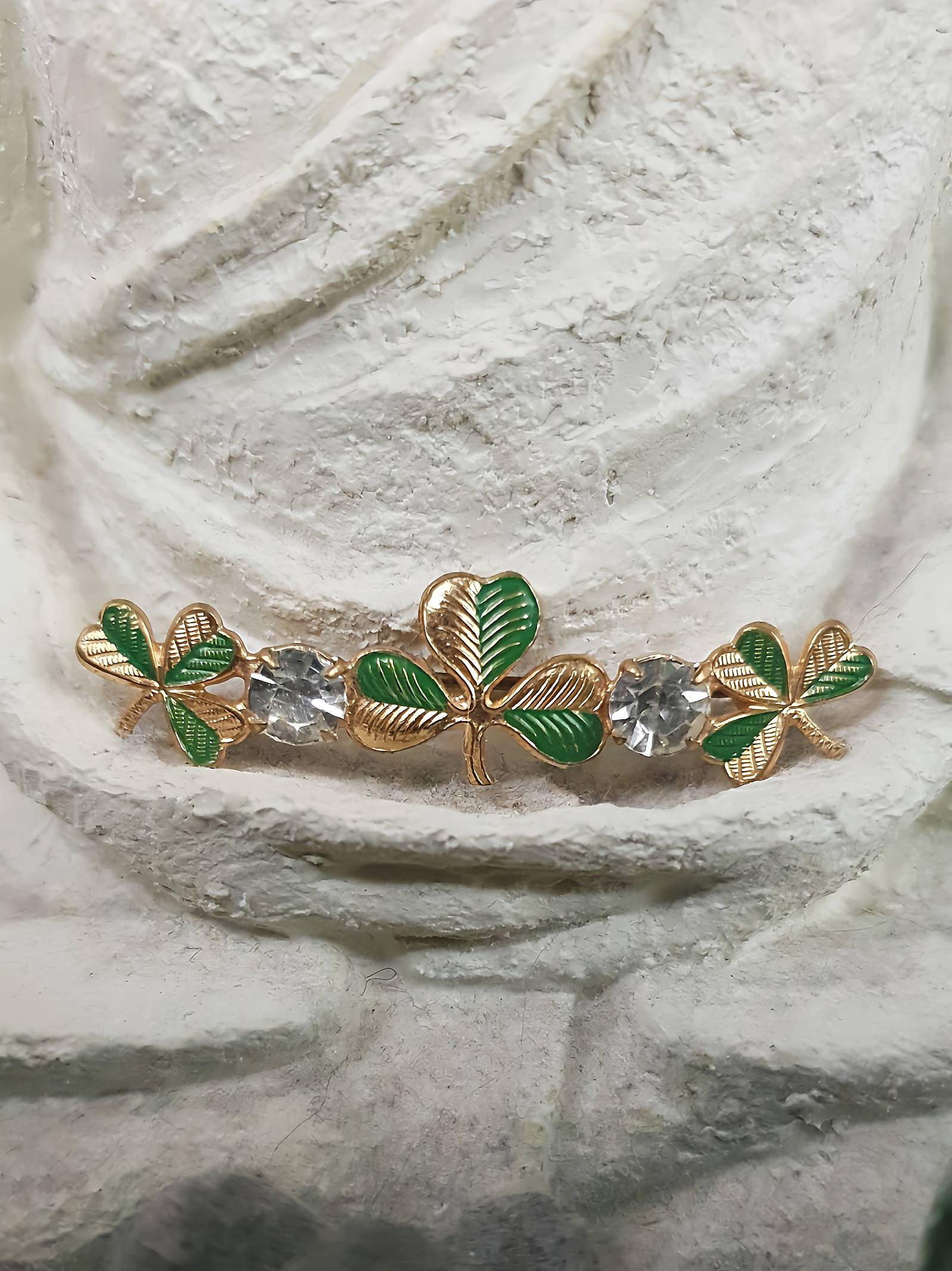 1950s Vintage Clover Rhinestone Brooch Czech Shamrock Mid-Century