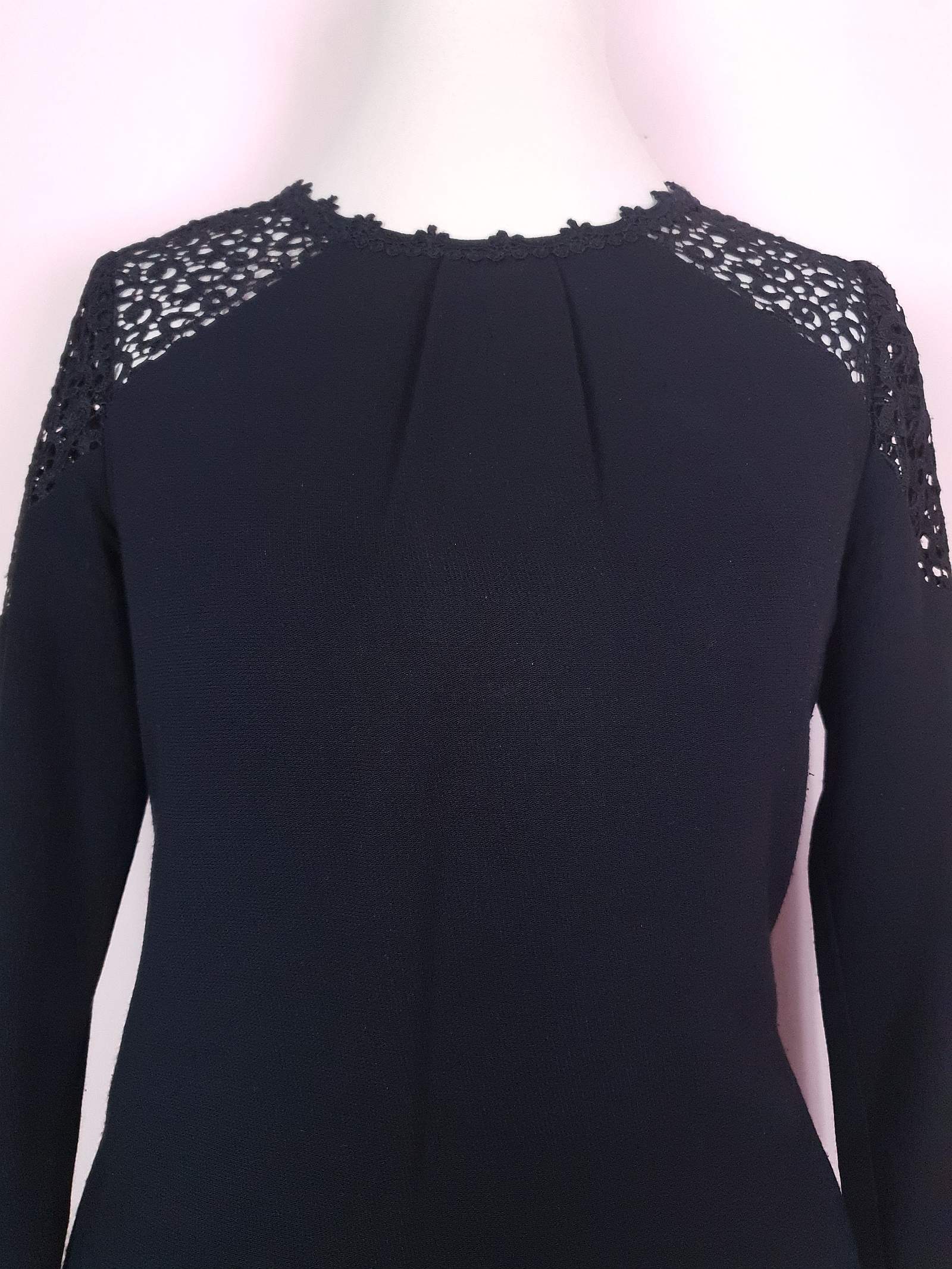 90s Vintage Monsoon Black Lace Dress Midi LBD - Size 8