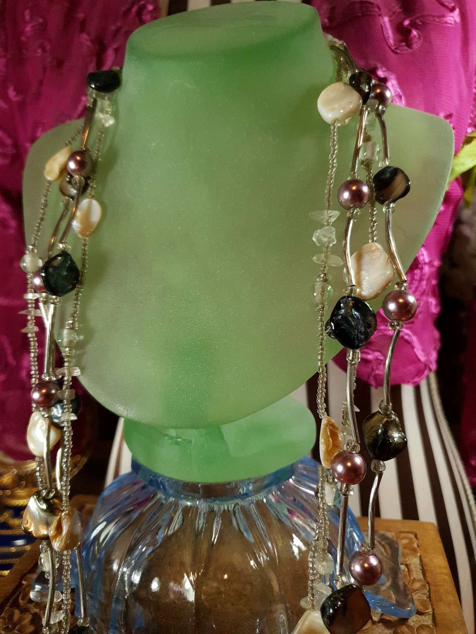 Abalone Mother of Pearl Shell Necklace Faux Multi Tier Long Boho - Pre-Owned