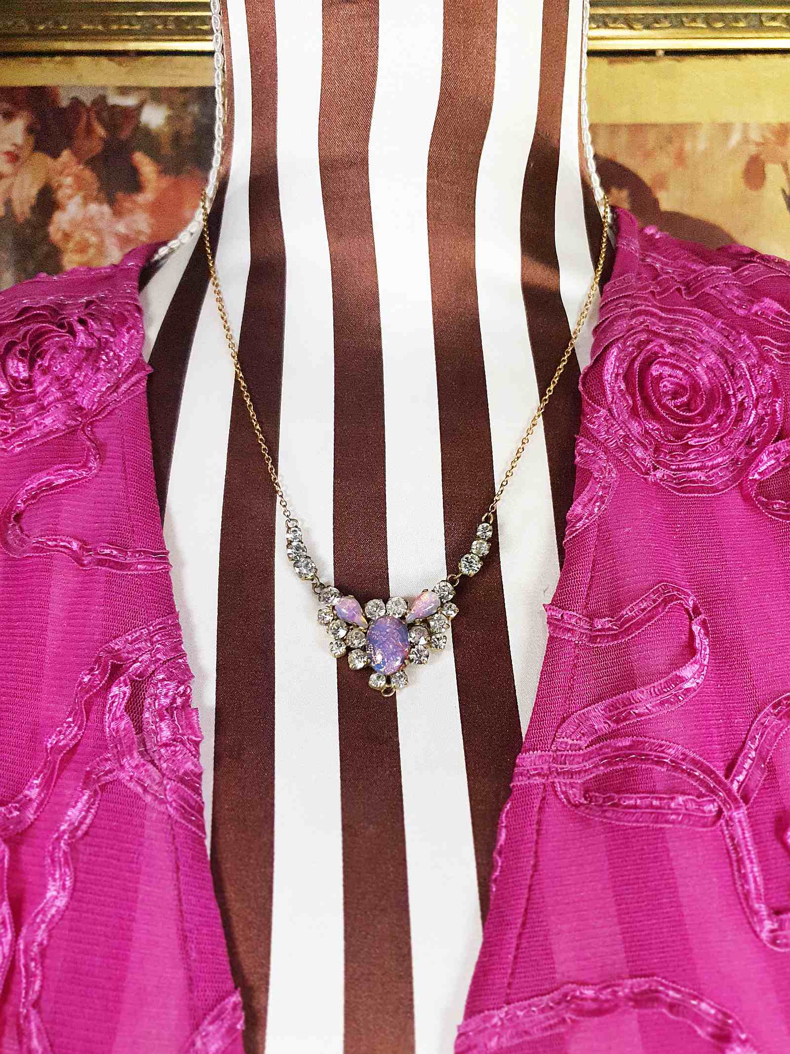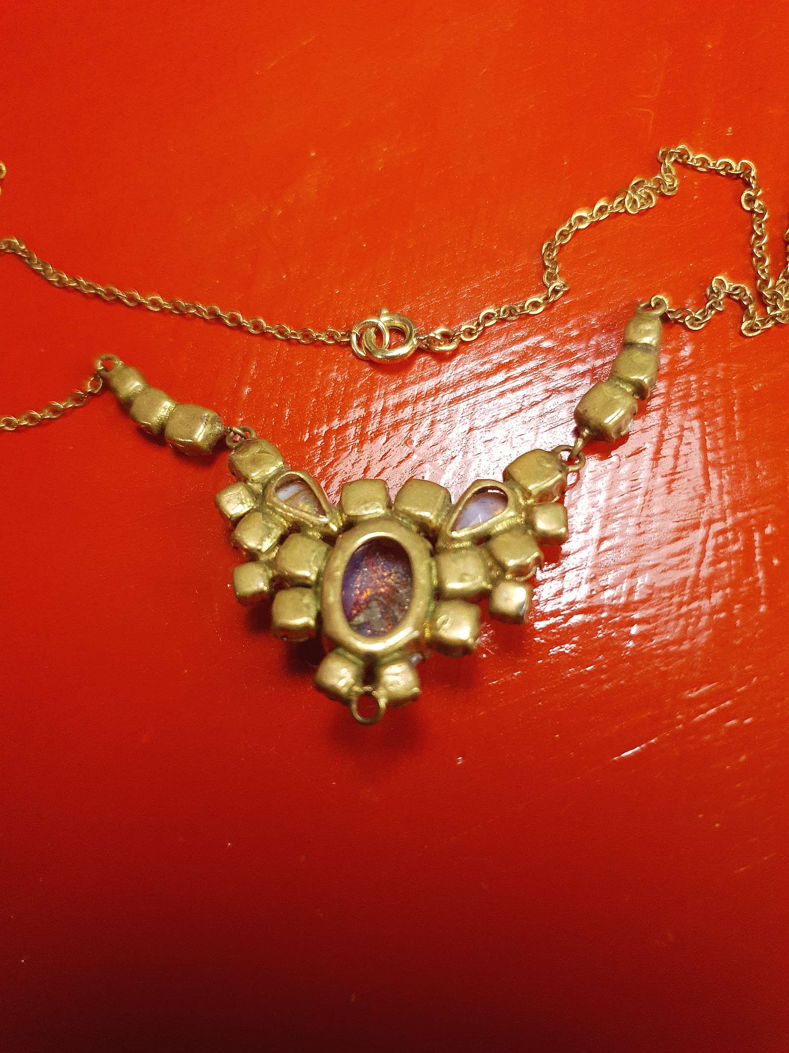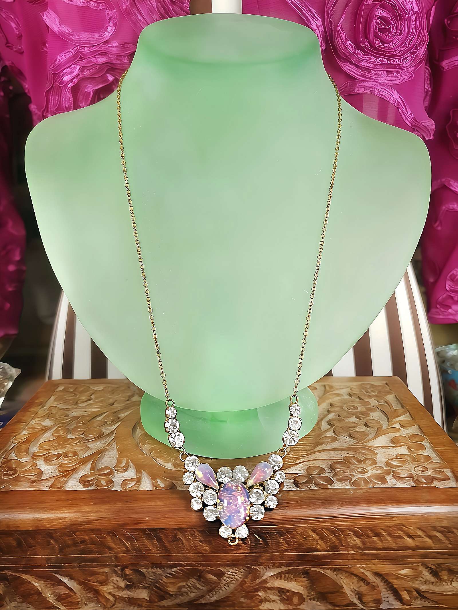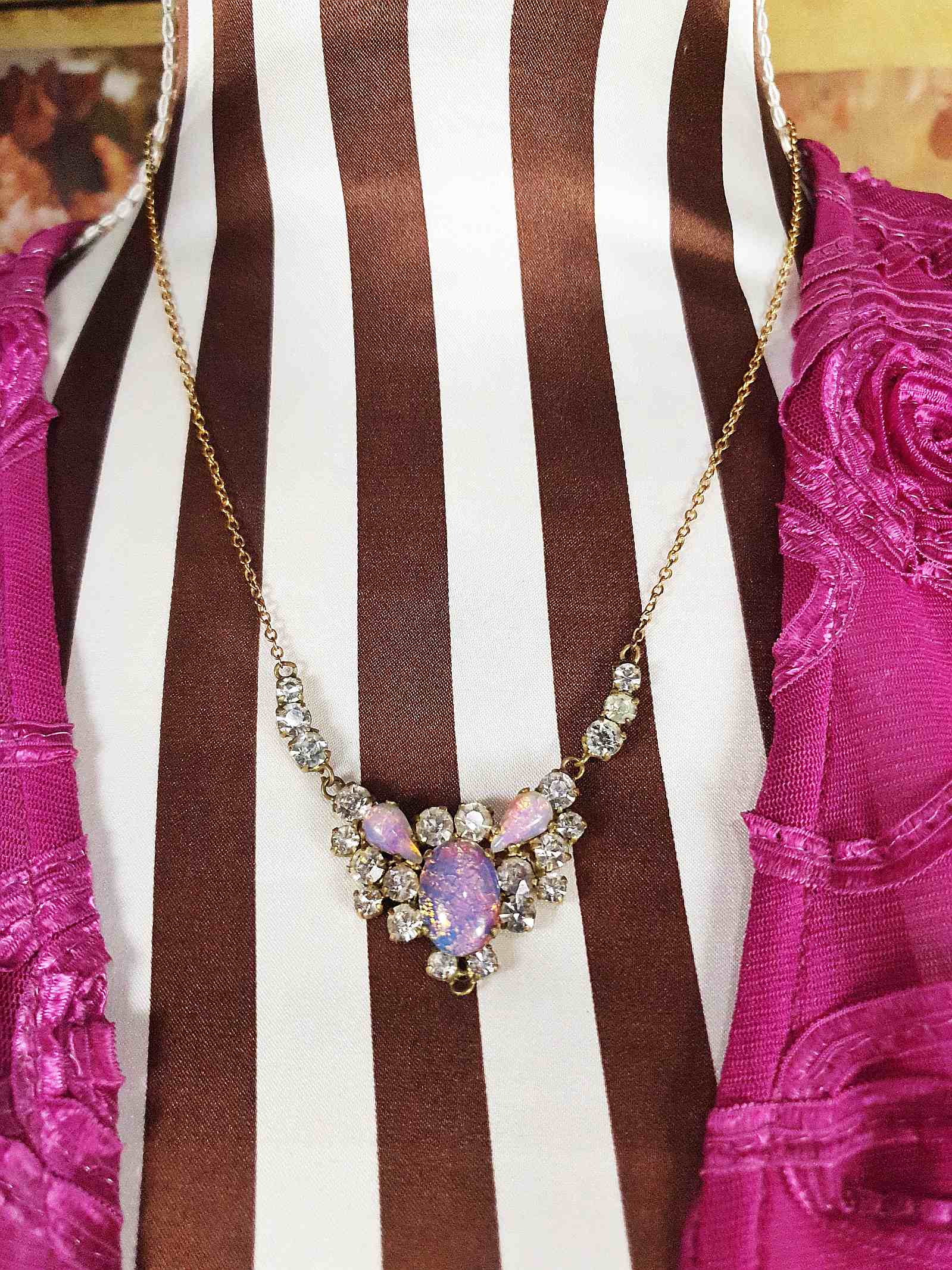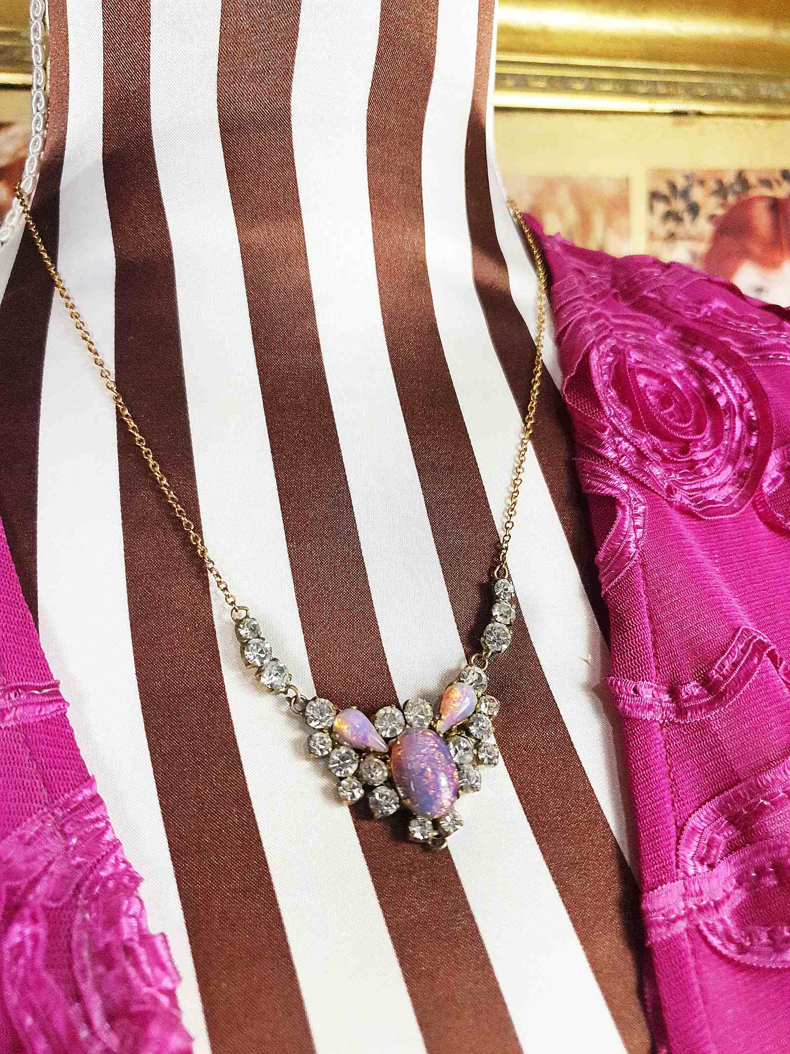 Art Deco Vintage Dragon's Breath Opal Necklace Paste Rhinestone 1930s