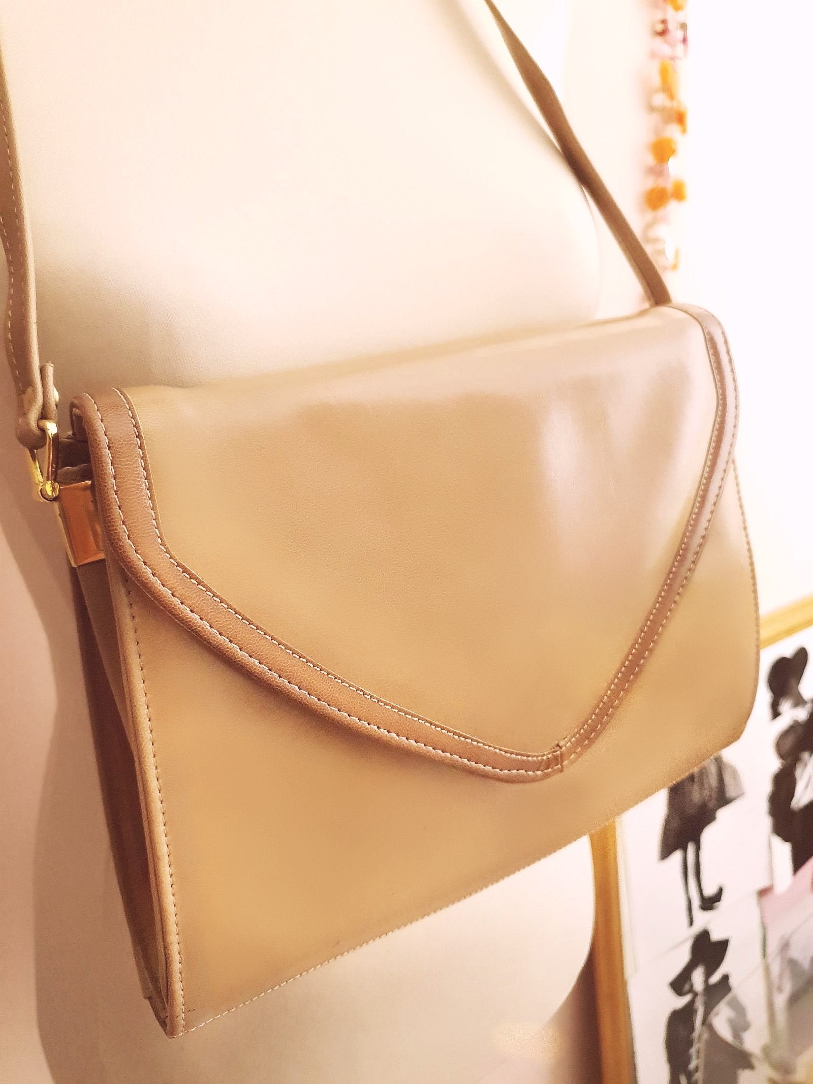 Vintage 1970s Tan Brown Shoulder Bag Handbag Retro