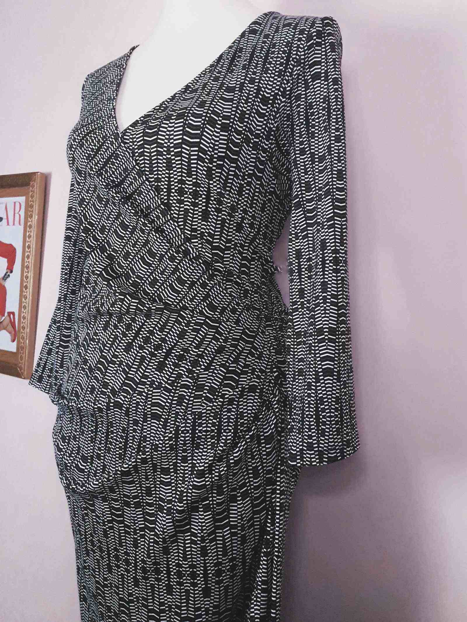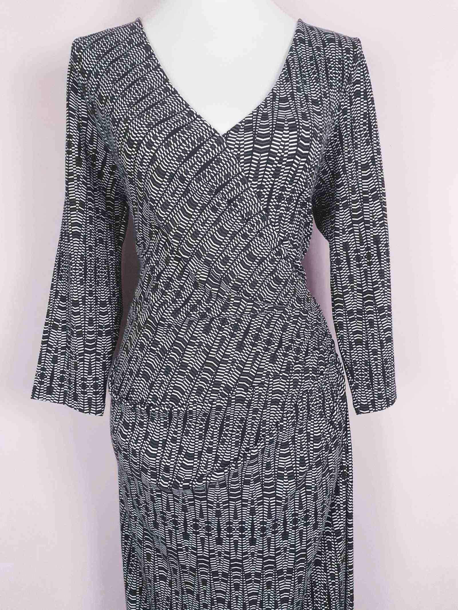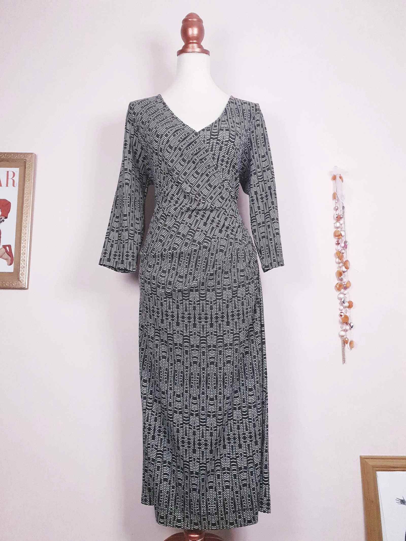 Vintage 90s Jaeger Wrap Dress - Size 12/14 Black White Geometric