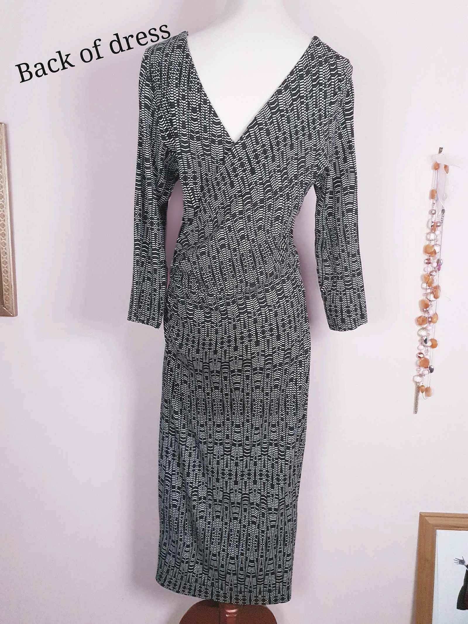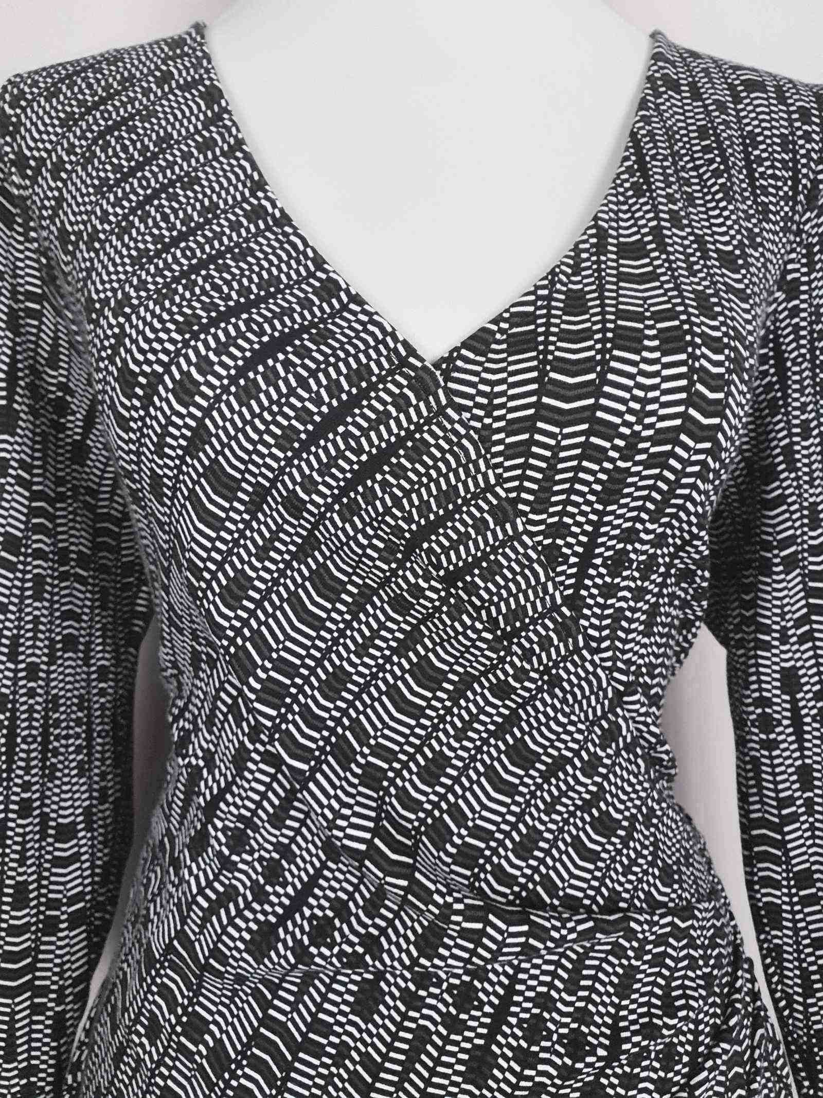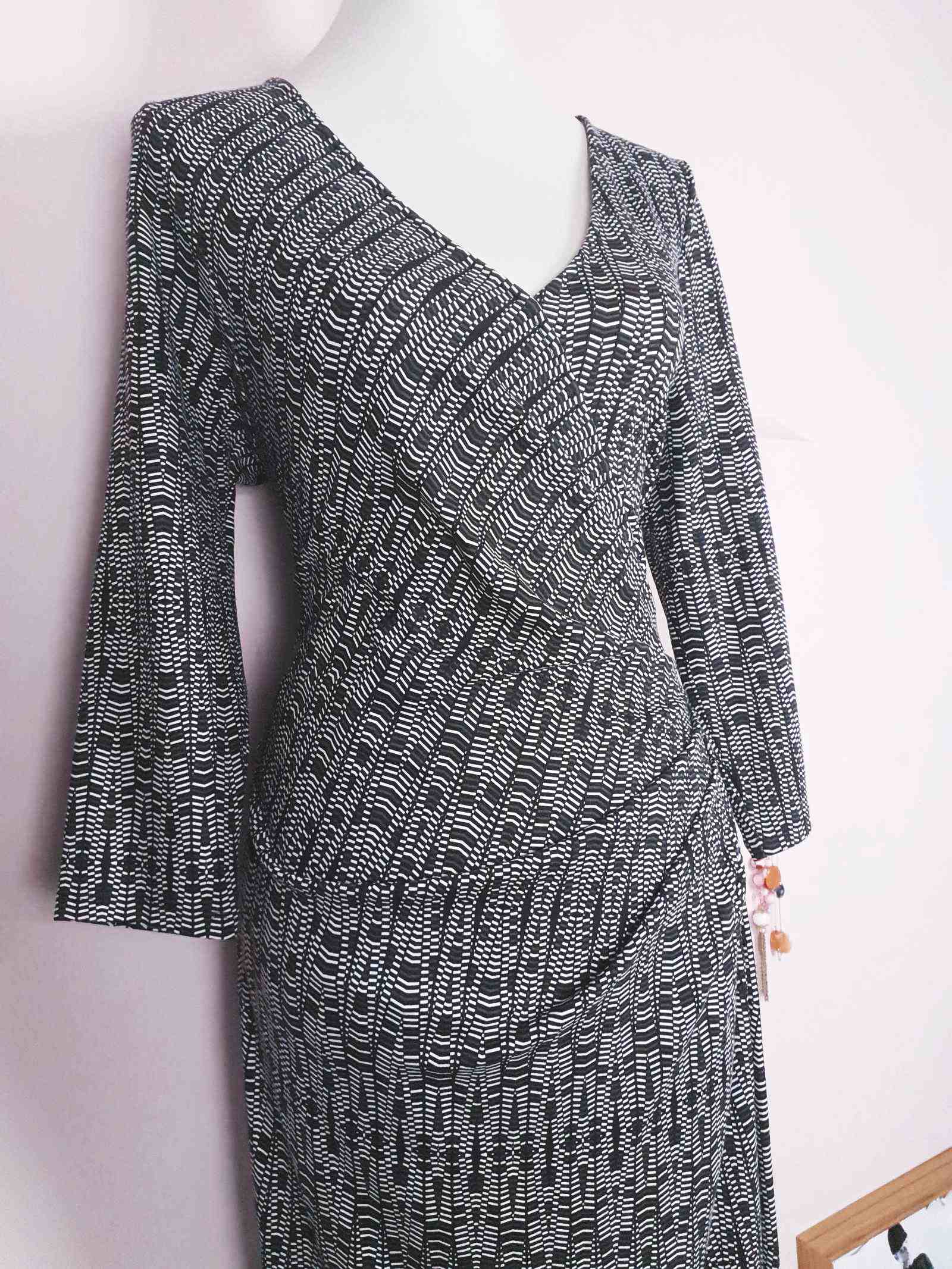 Vintage 90s Jaeger Wrap Dress - Size 12/14 Black White Geometric