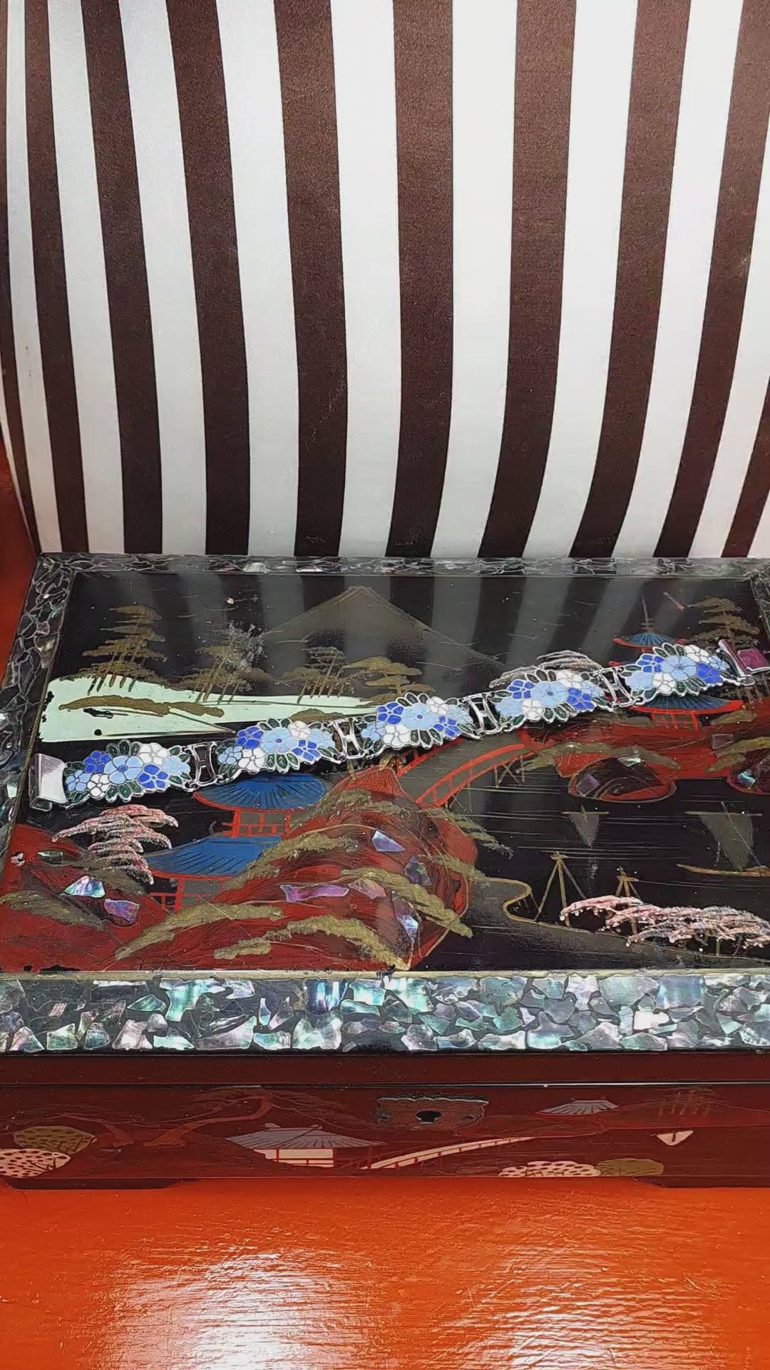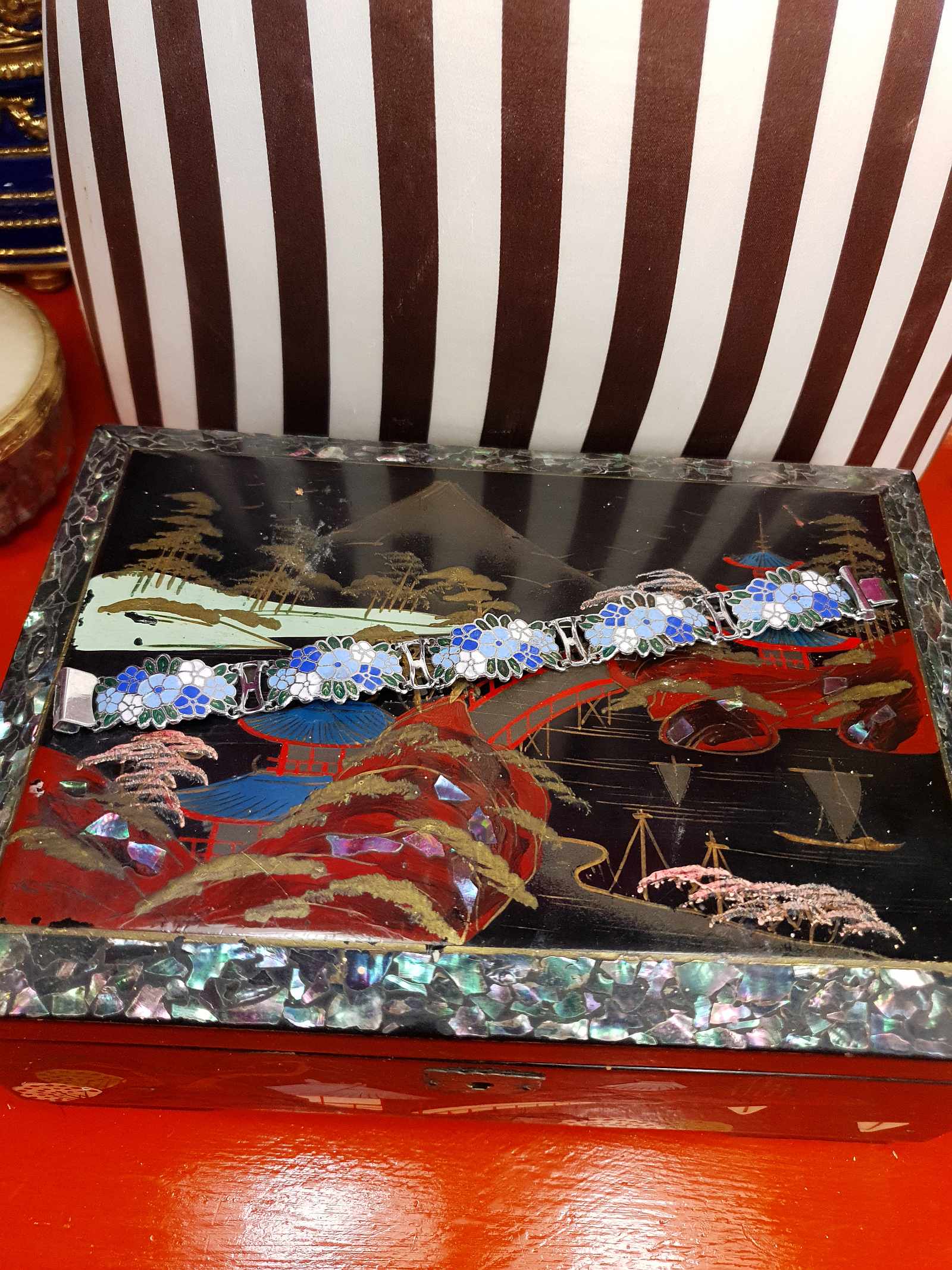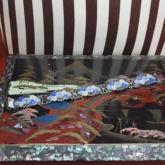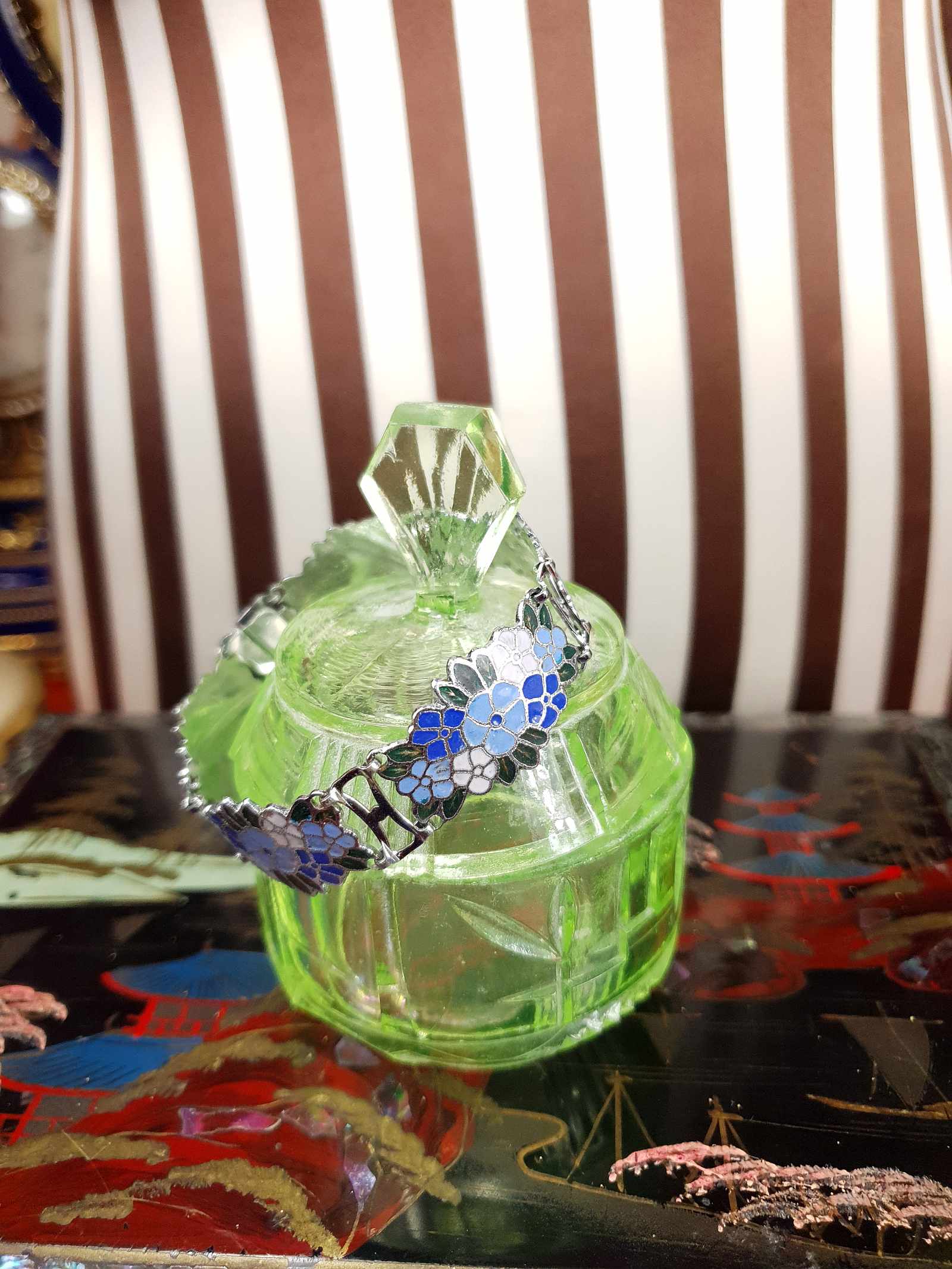 Vintage 1980s Blue Floral Cloisonne Bracelet Flower