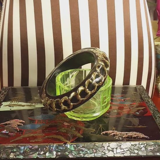 Vintage 1980s Lucite Gold Chain Bangle Bracelet Modernist
