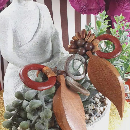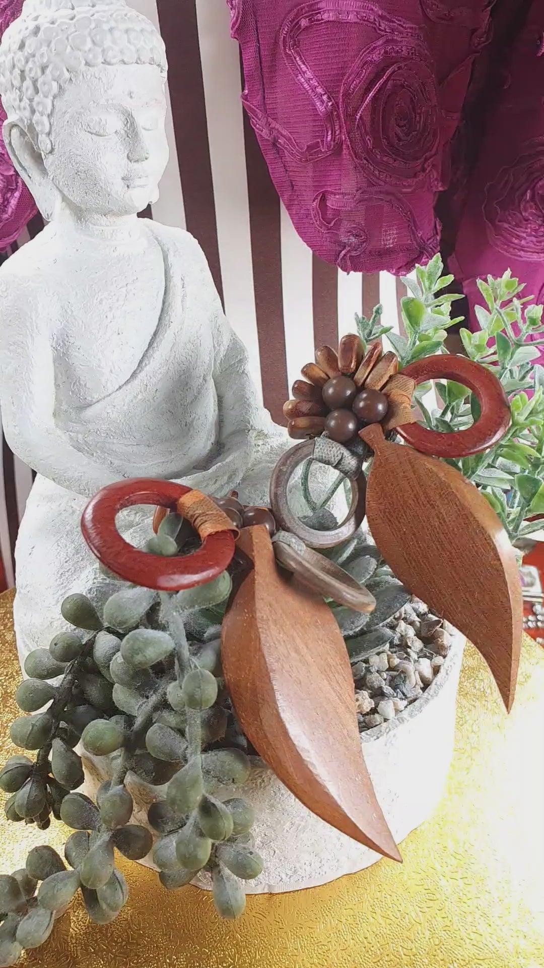 Dive into retro magic with these charmingly quirky and unique 80s wood clip-on earrings, featuring circle and leaf shapes. Artisan-made and crafted from natural wood, they're feather-light and endlessly comfortable for all-day wear.