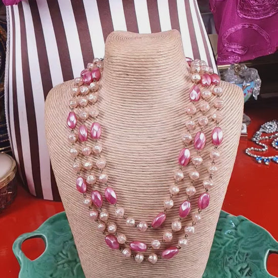 Vintage 1930s Pink Glass Bead Long Necklace Art Deco