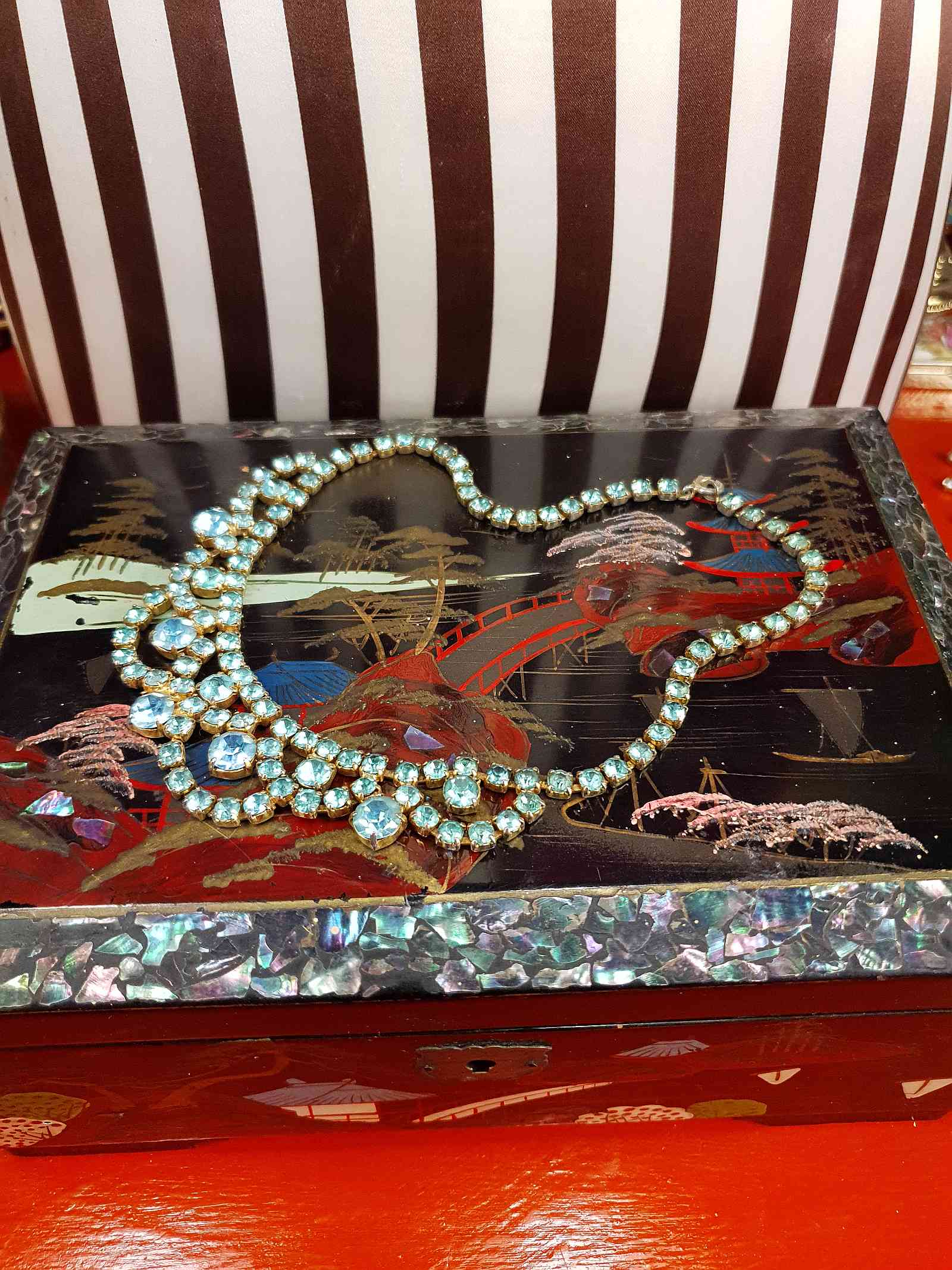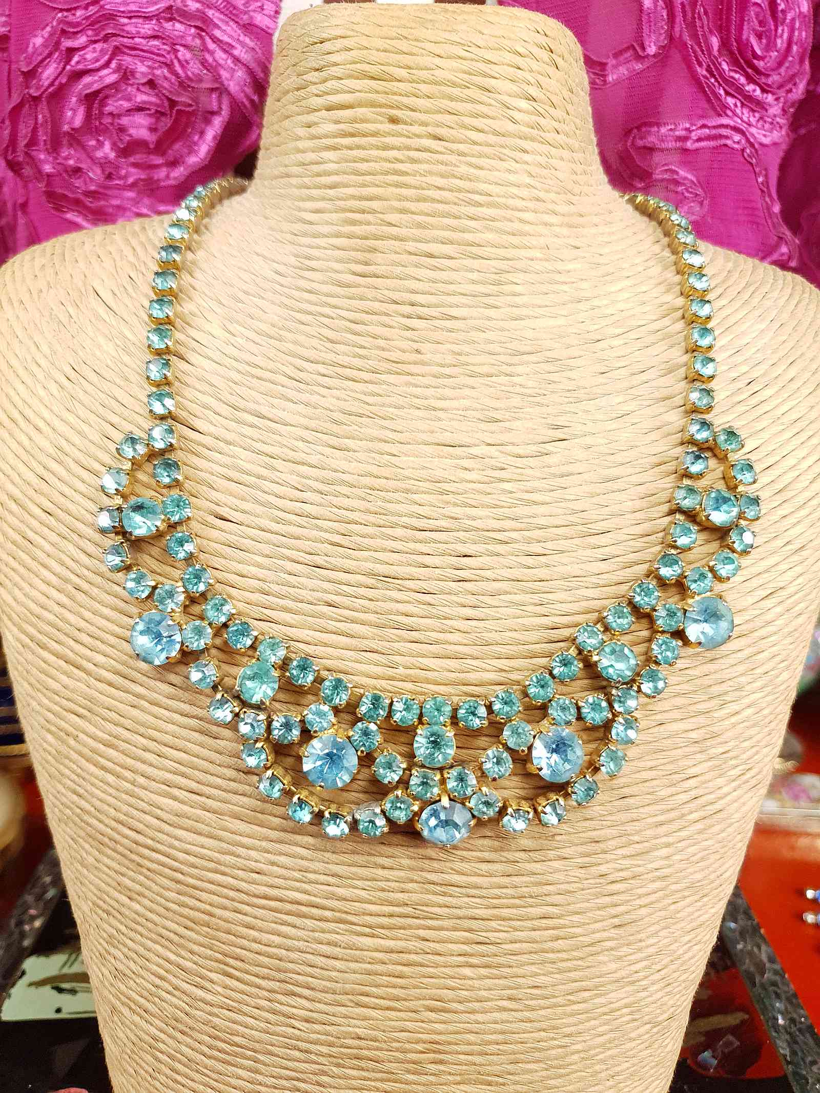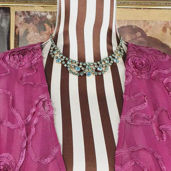 Vintage 1940s Blue Rhinestone Necklace Choker