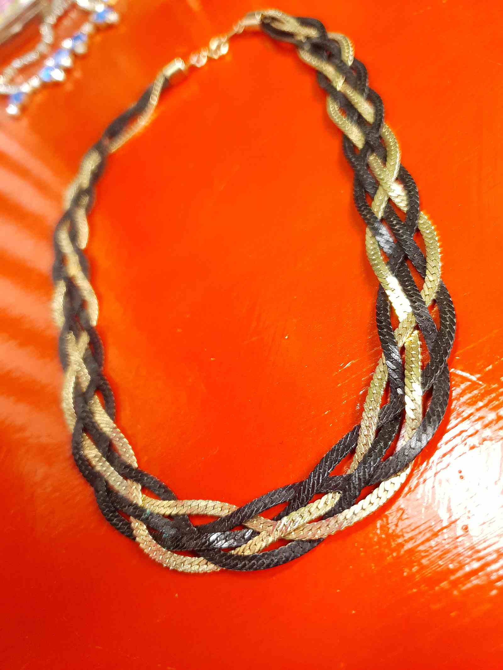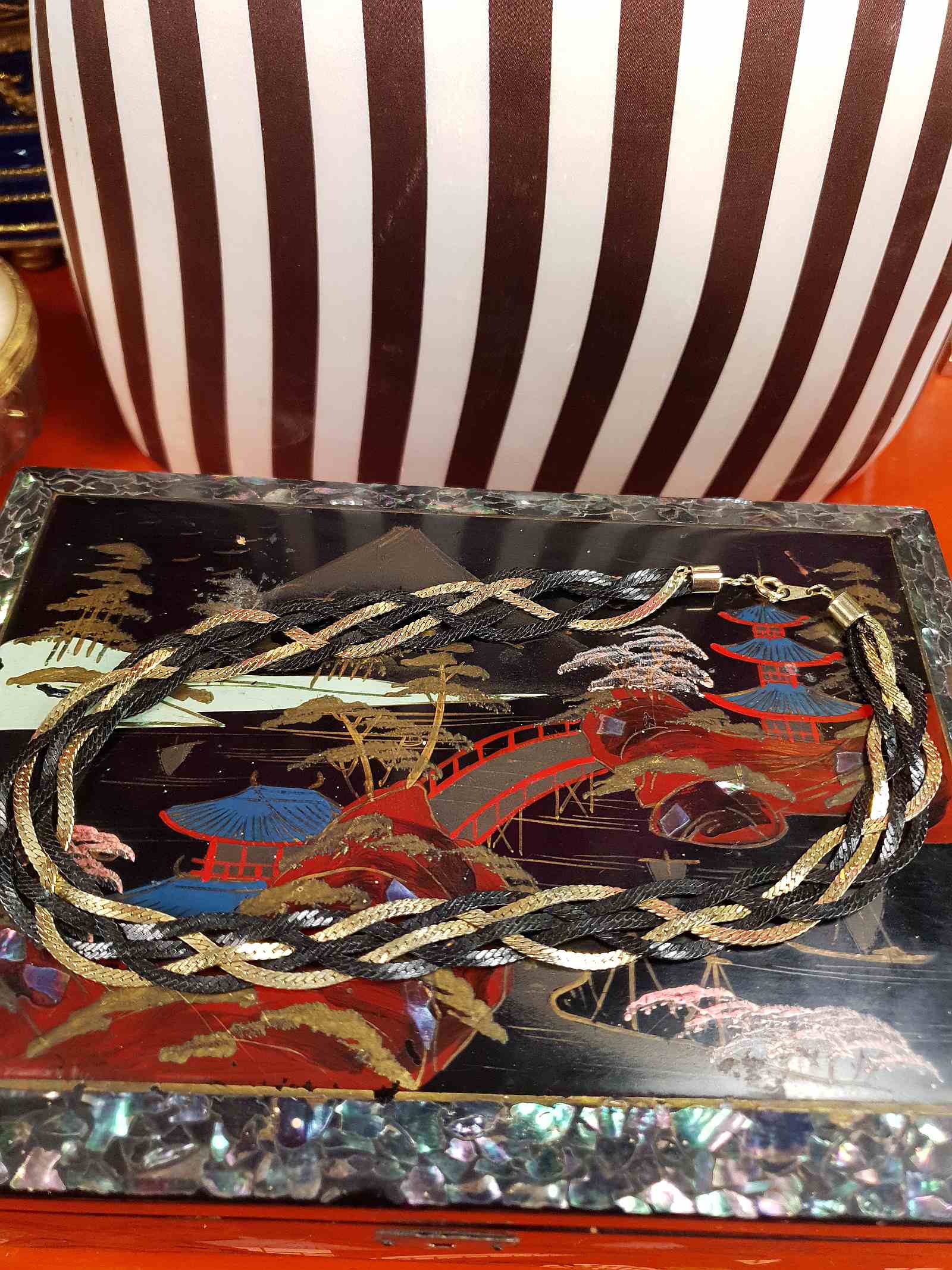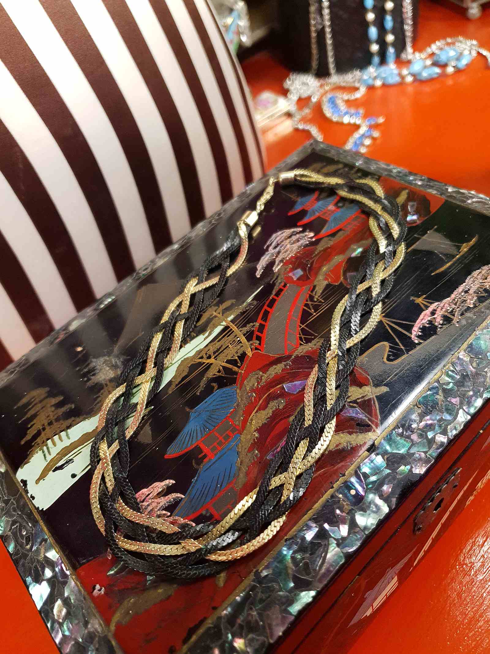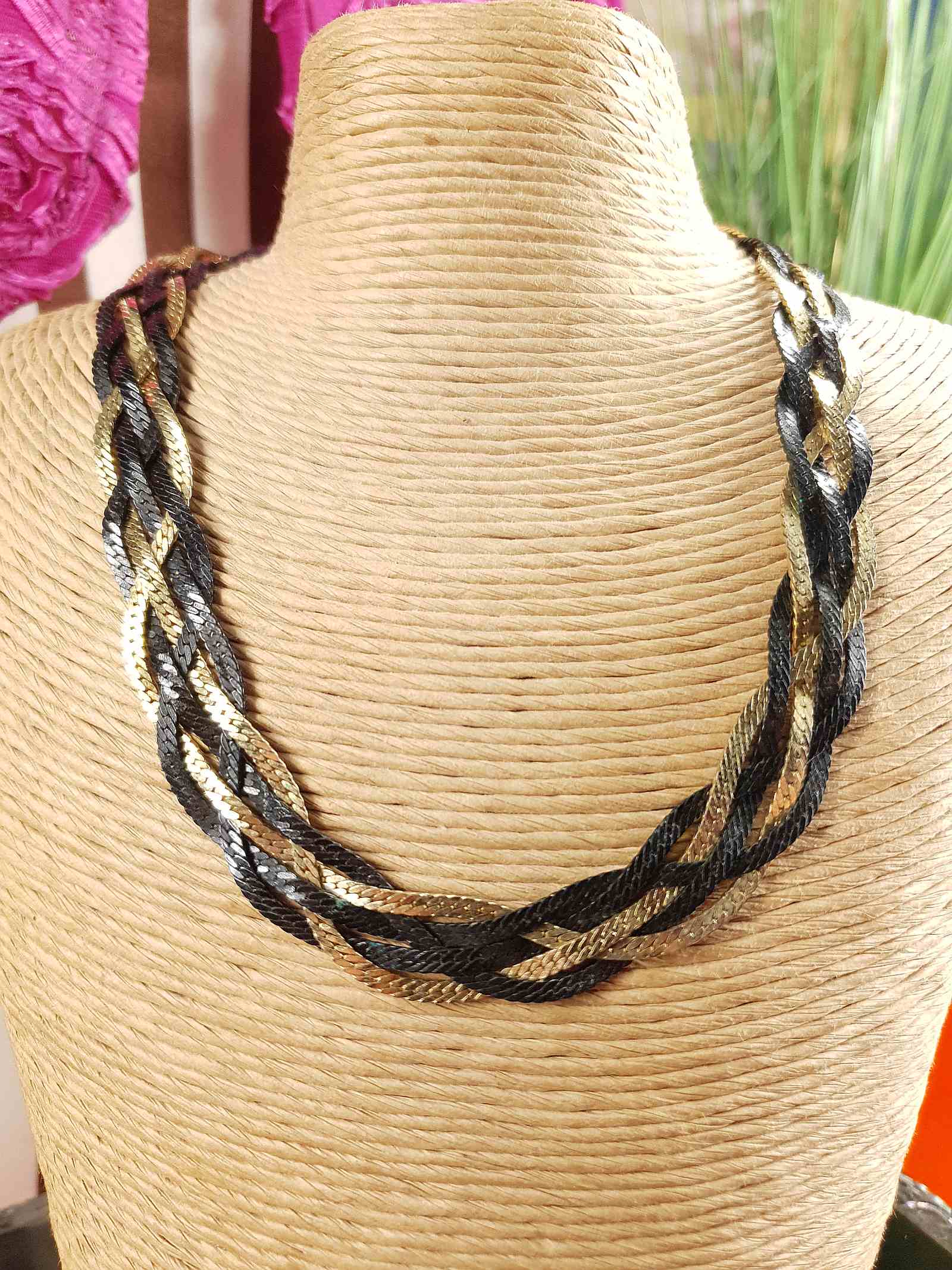 Vintage 1970s Black Gold-Tone Plaited Necklace Choker Retro