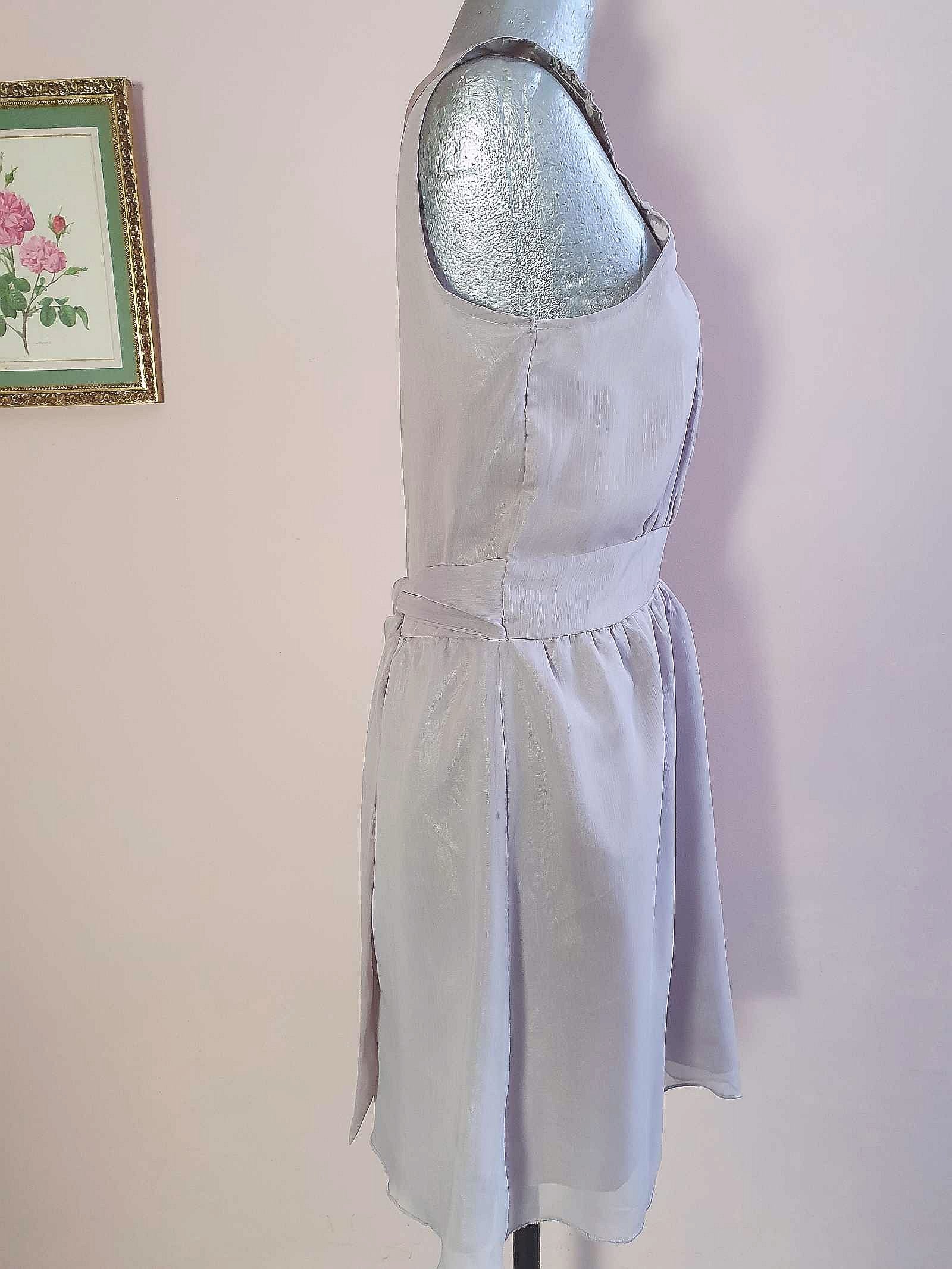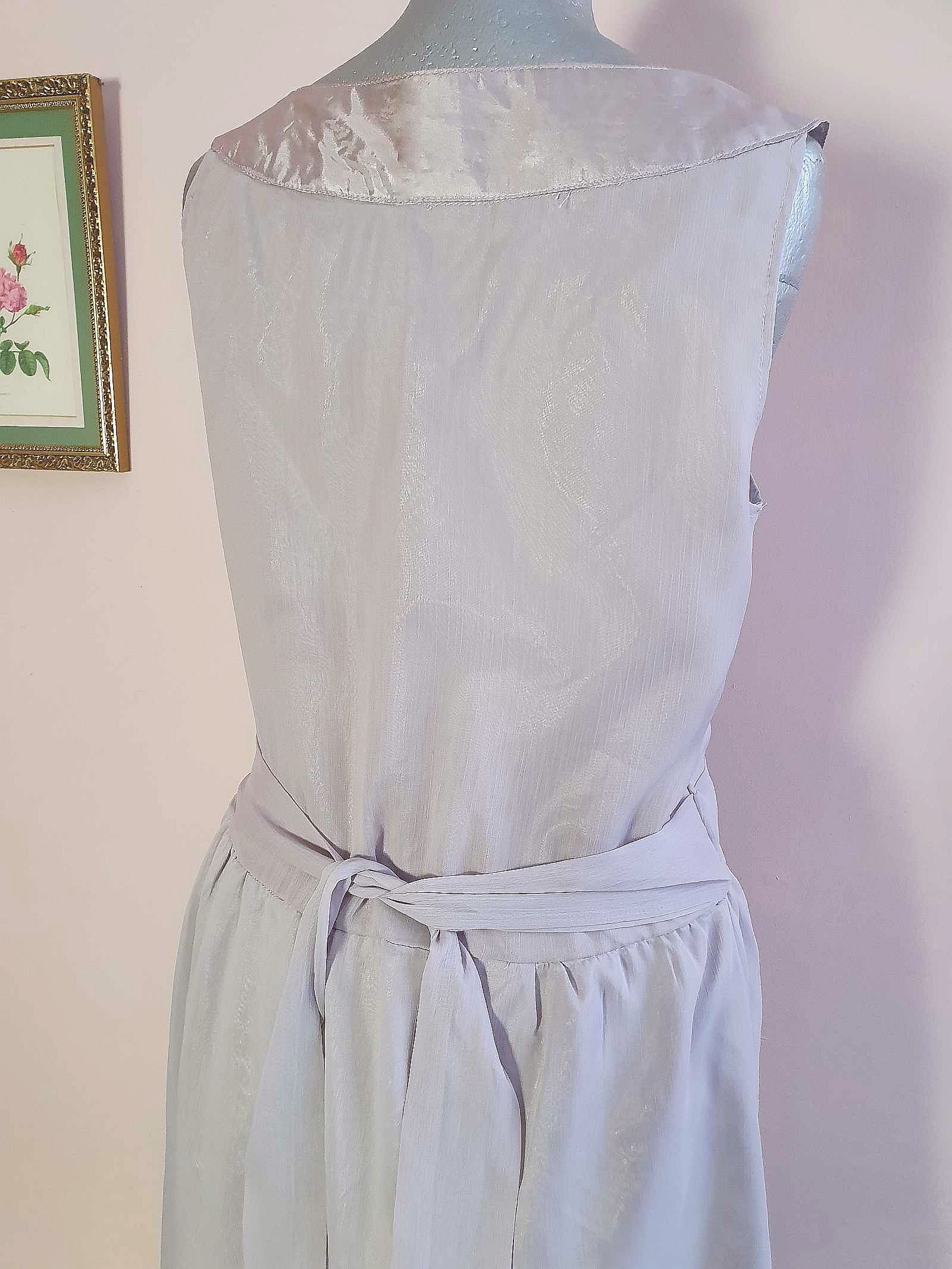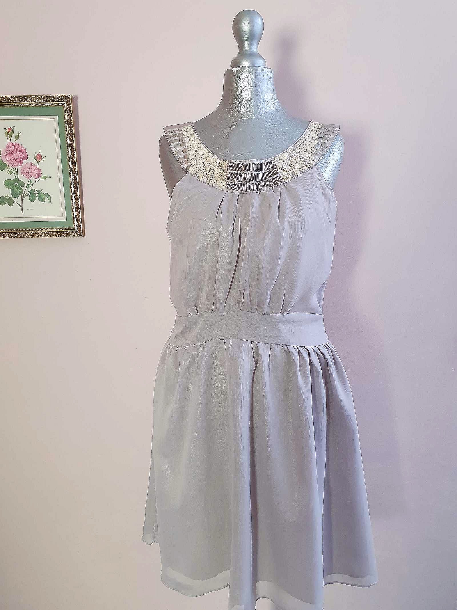 Vintage Grey Party Dress Chiffon Sequin Floaty Evening Cocktail - Size 12