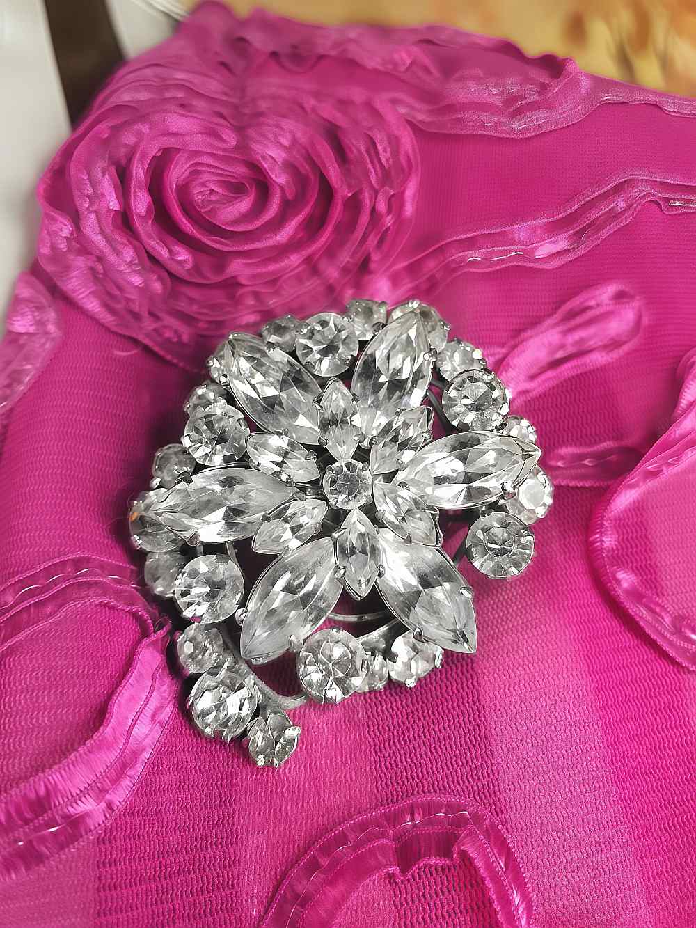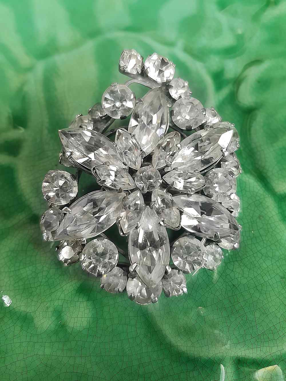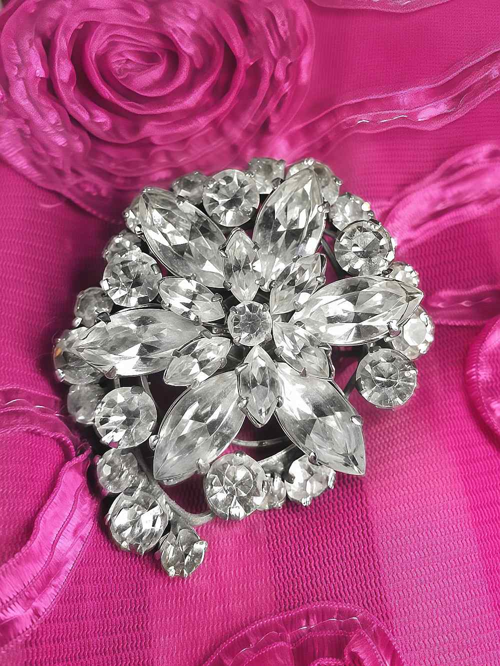 Vintage 1930s Clear Rhinestone Brooch Flower Floral
