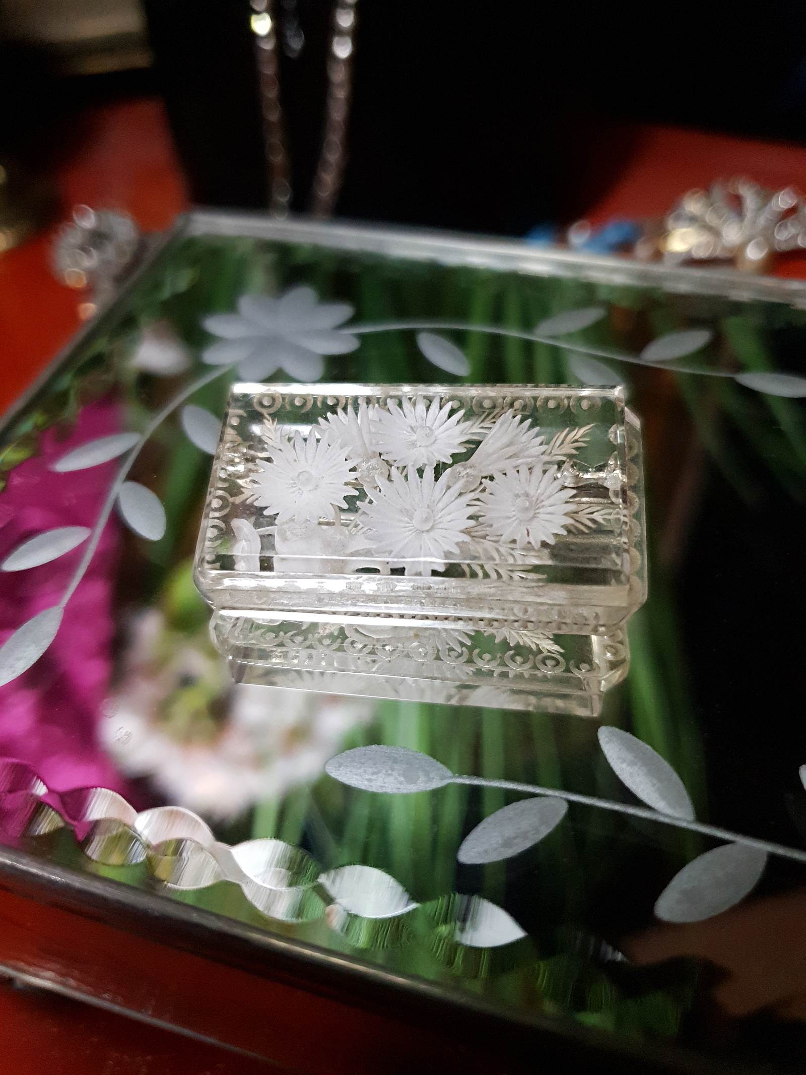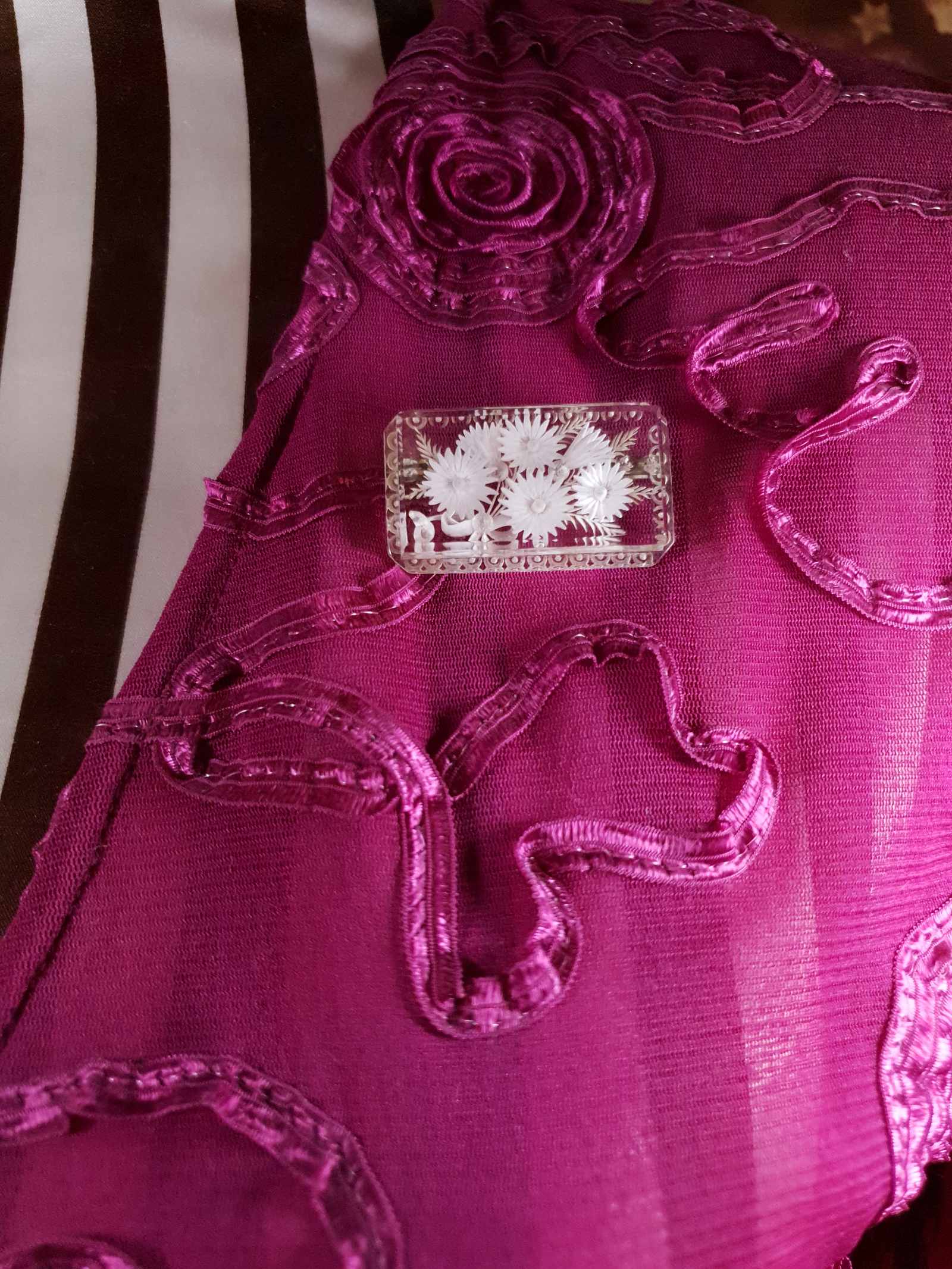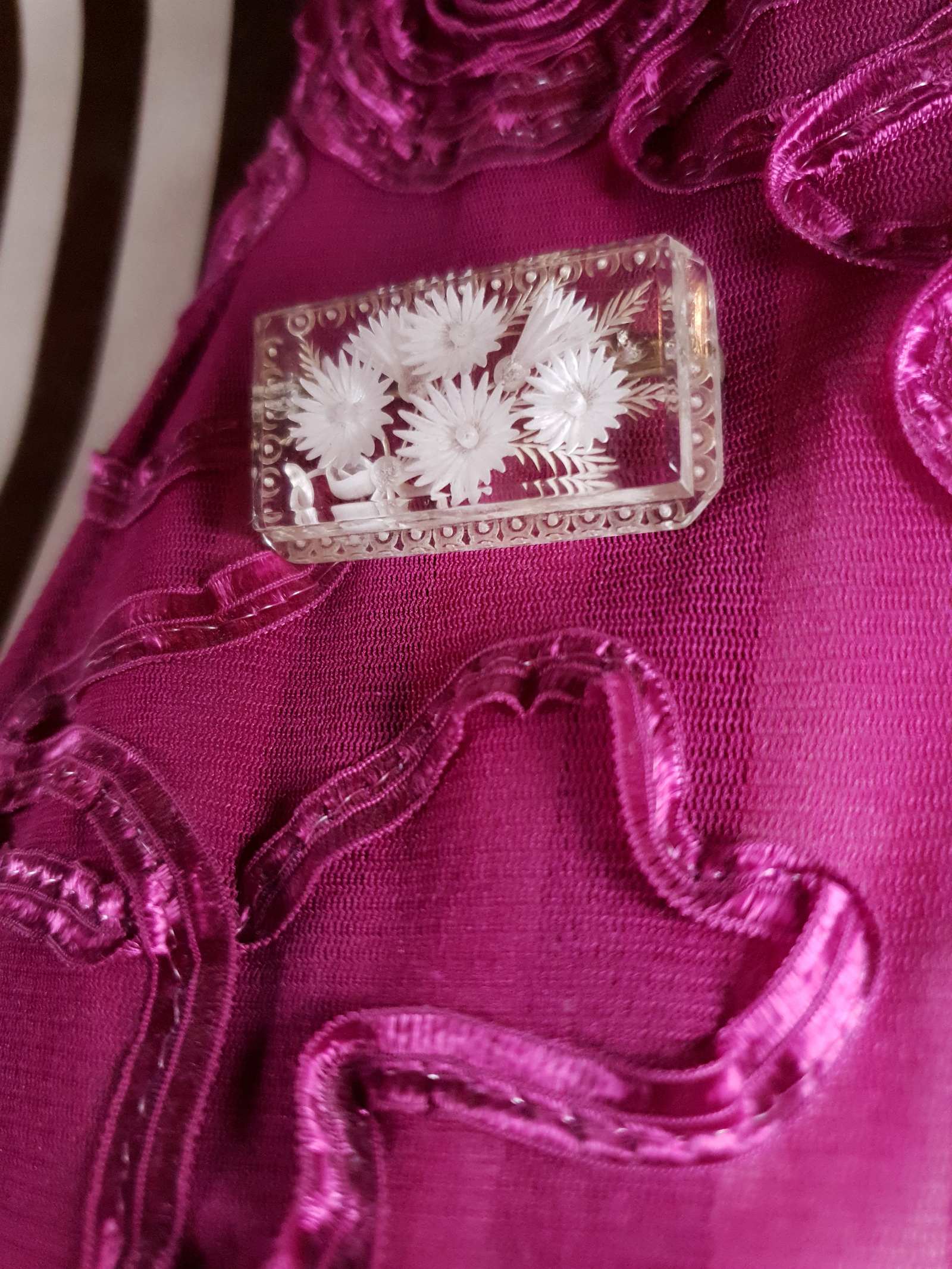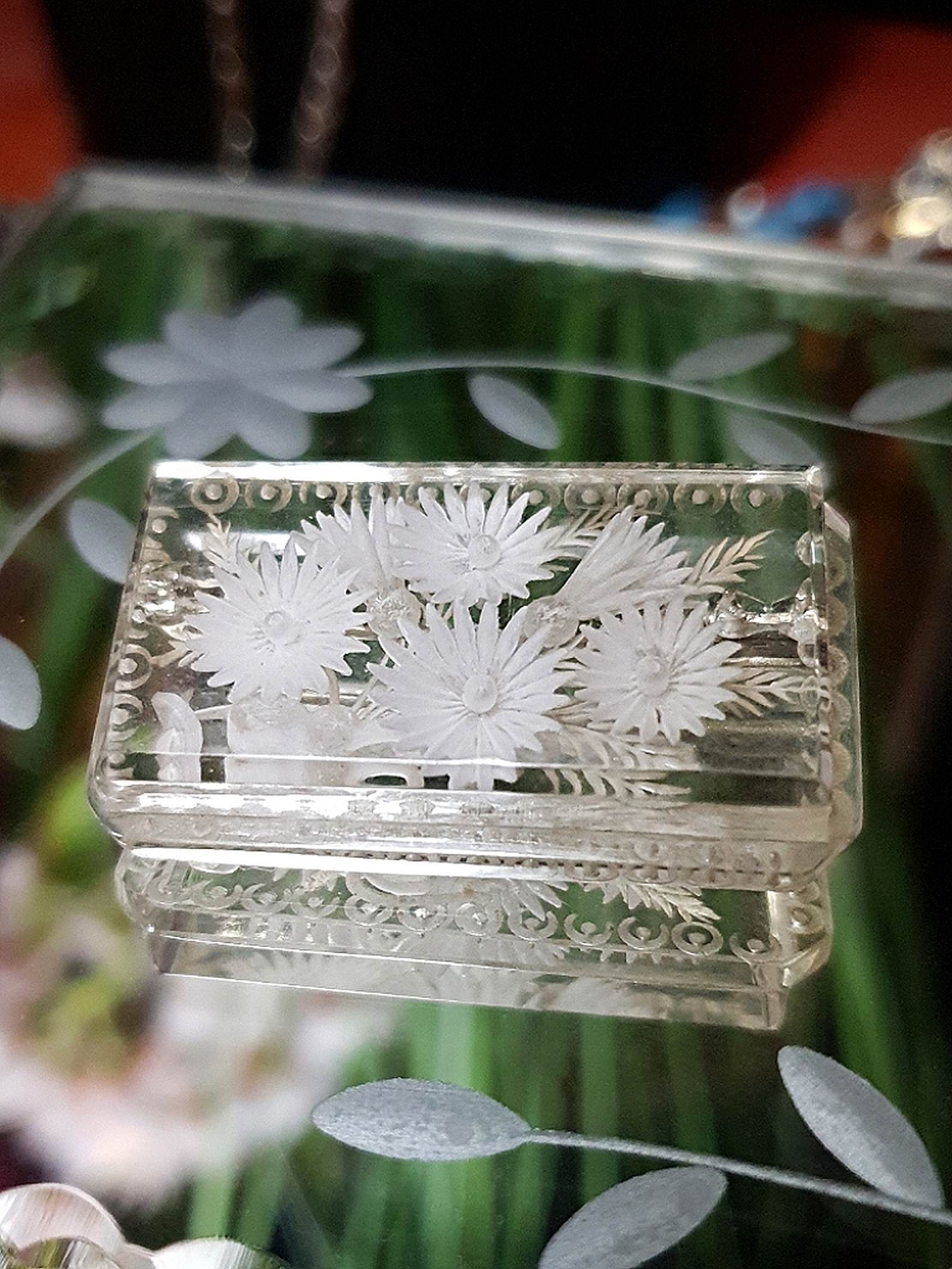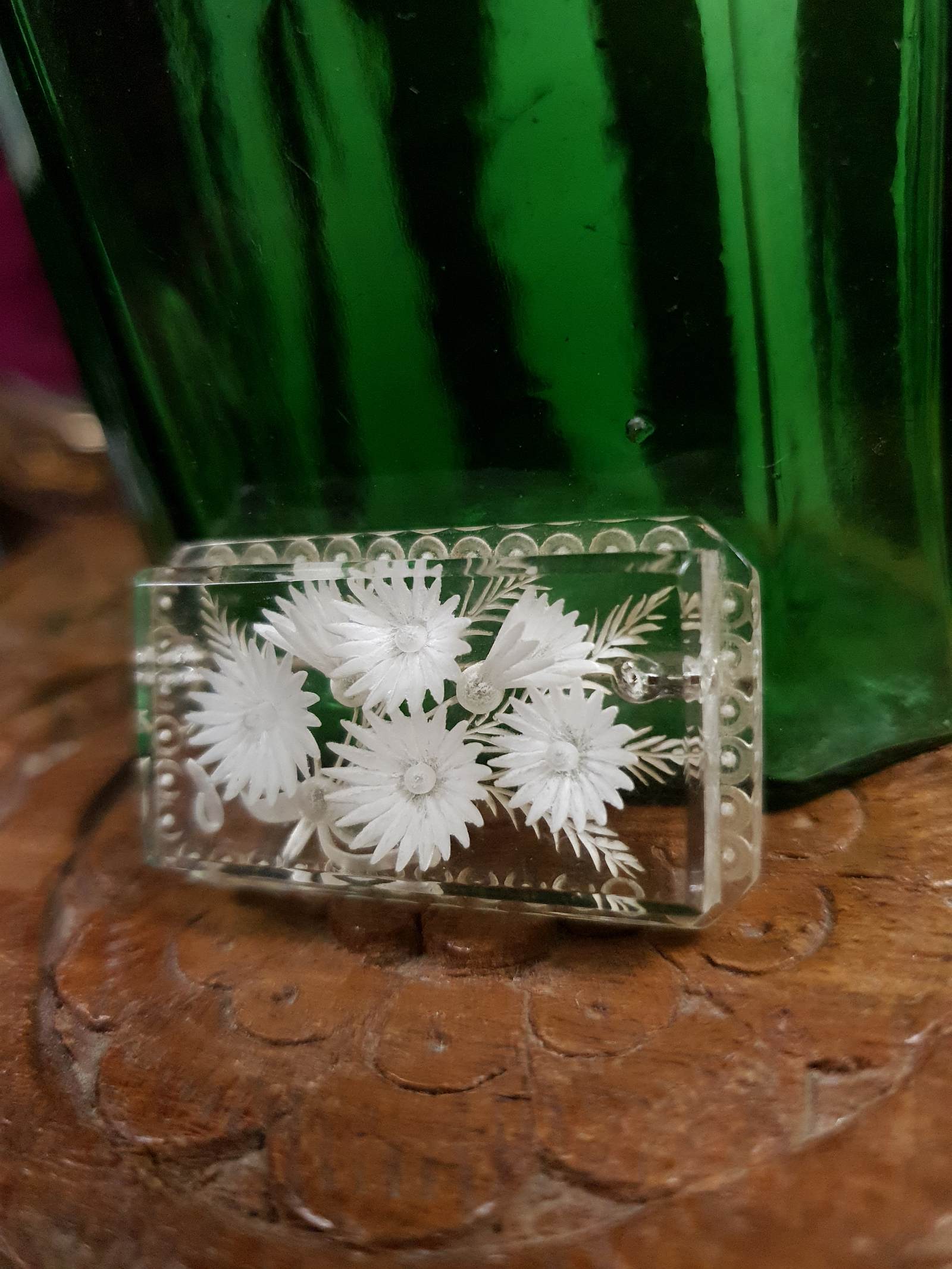 Vintage 1930s Reverse Carved Lucite Brooch Art Deco Floral Flower French RARE