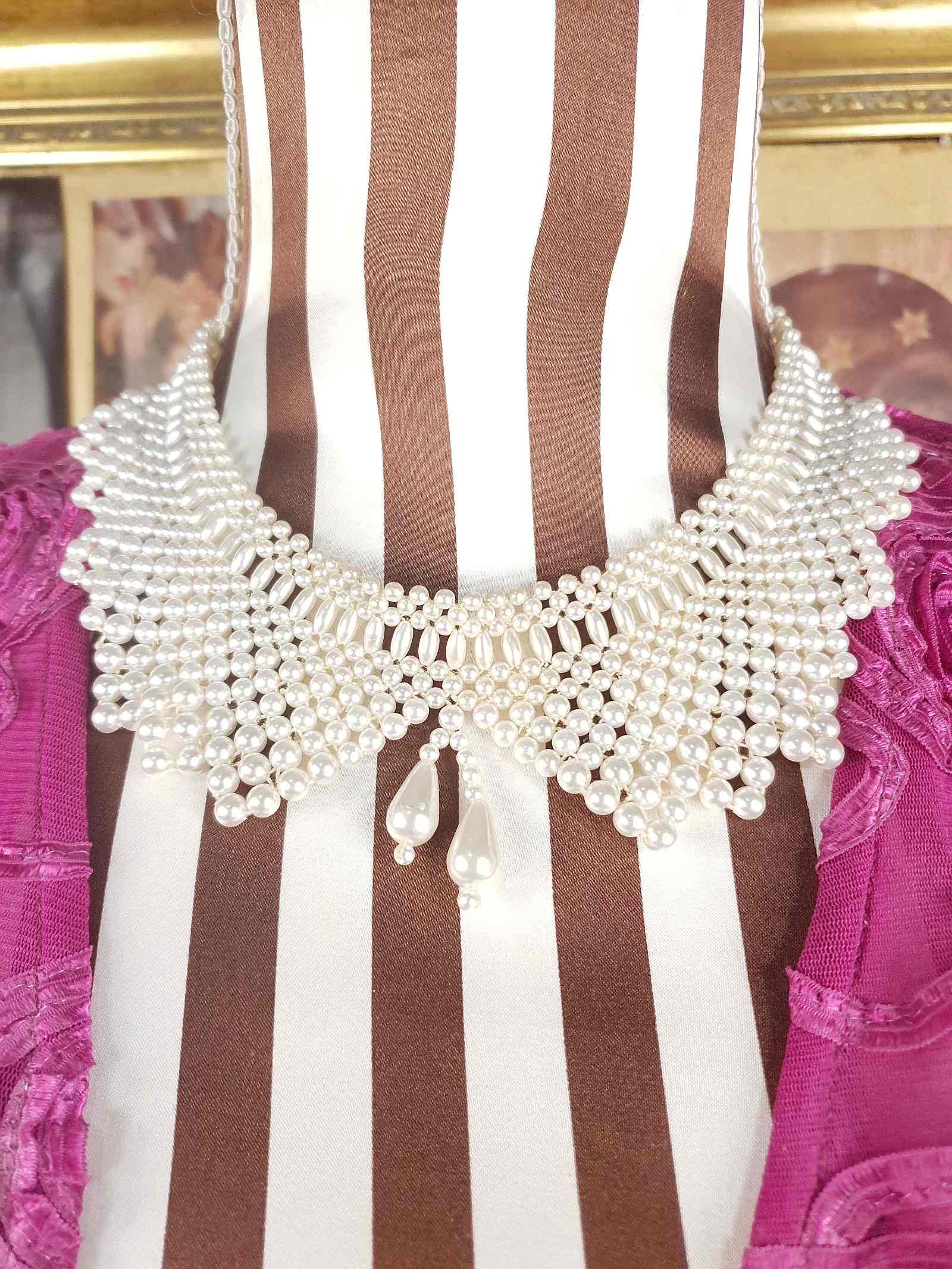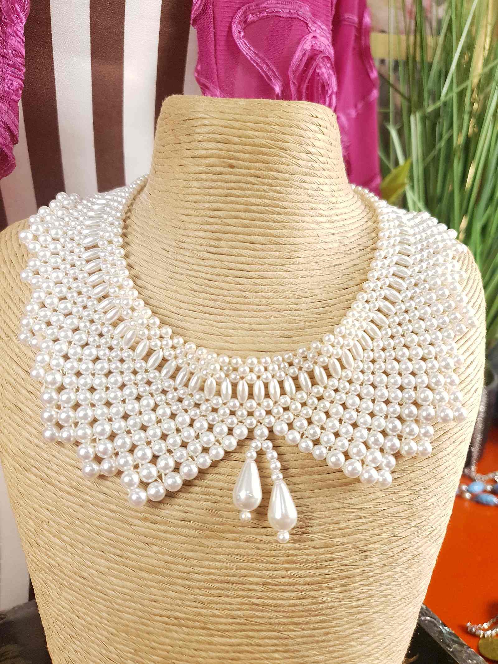 Vintage 1950s White Glass Pearl Collar Necklace Bib Statement