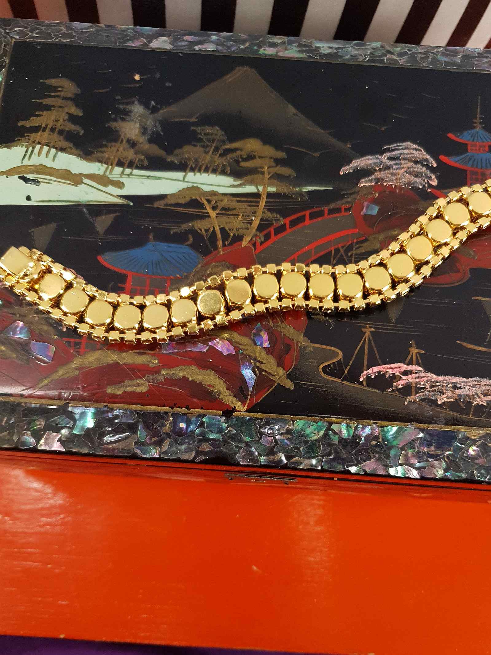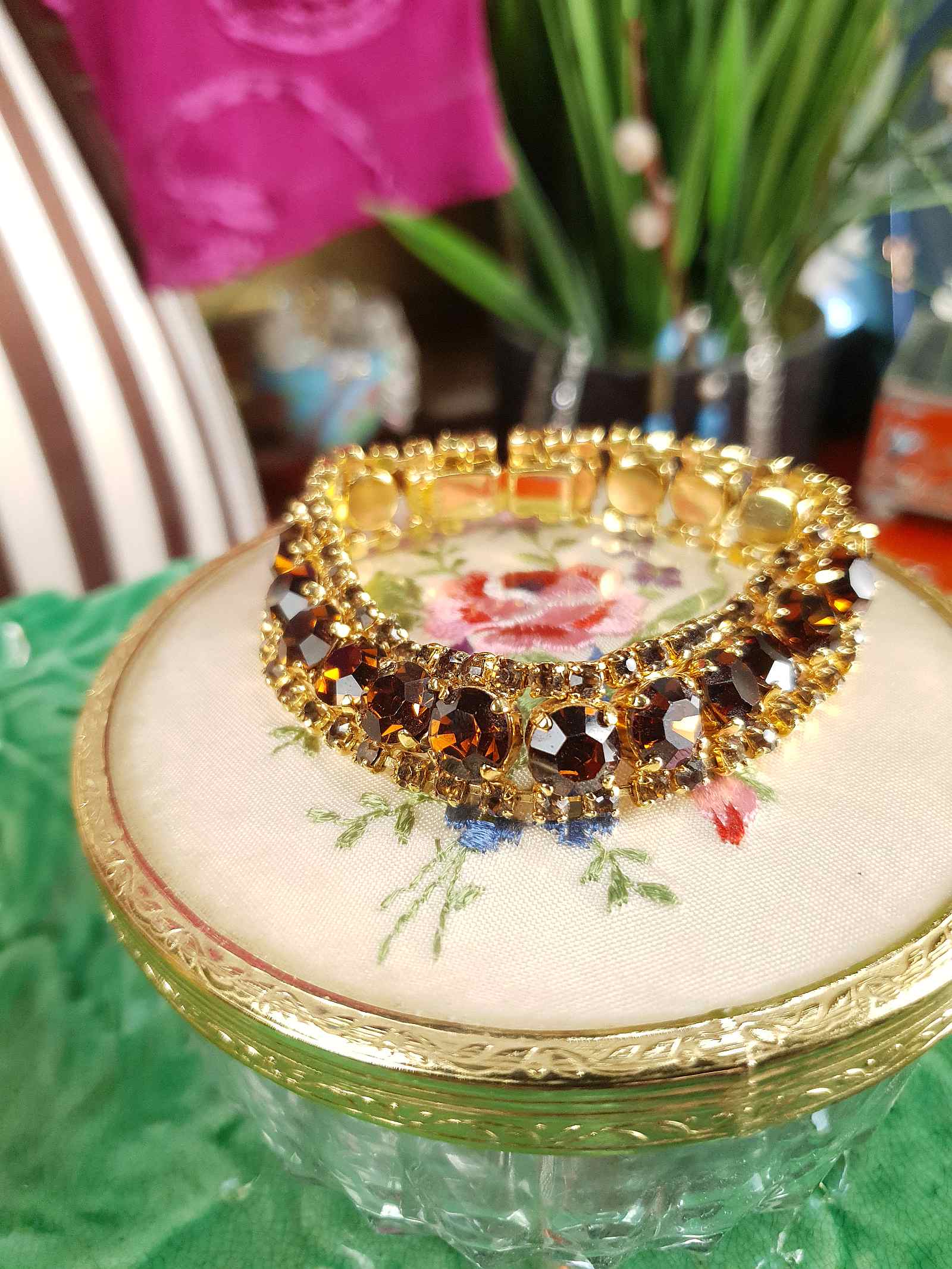 Vintage 1960s Amber Brown Rhinestone Bracelet Gold Tone Metal