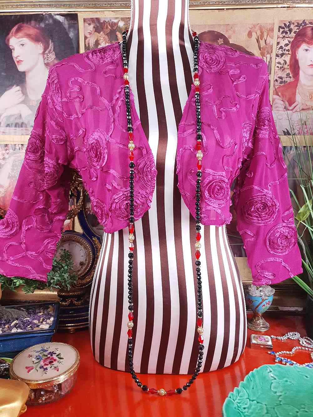 Vintage 1960s Black Red Bead Filigree Boho Necklace 61" Bohemian