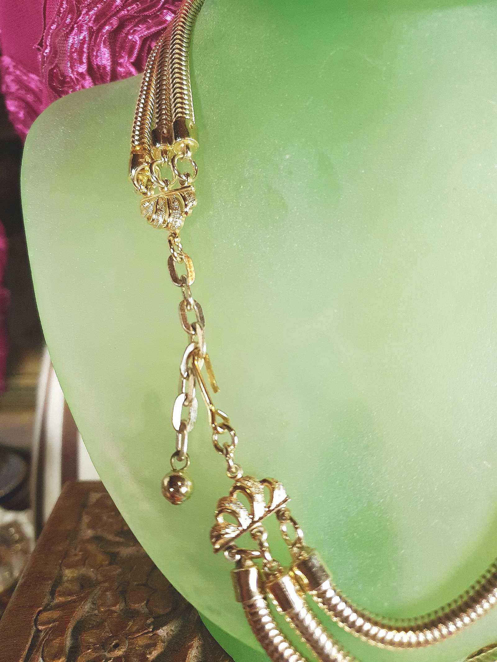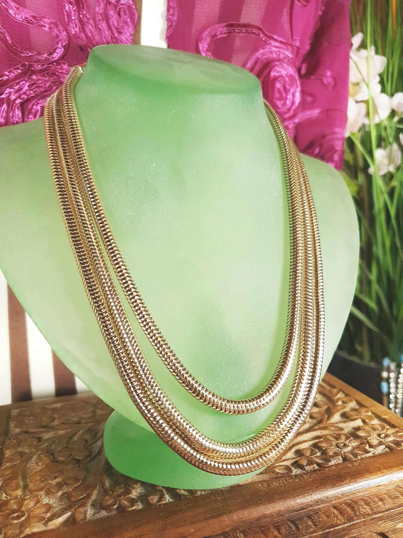 Vintage 1960s Snake Chain Necklace Three Tier Gold-Tone Retro
