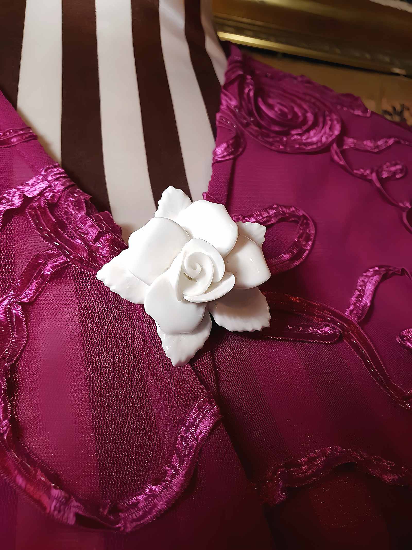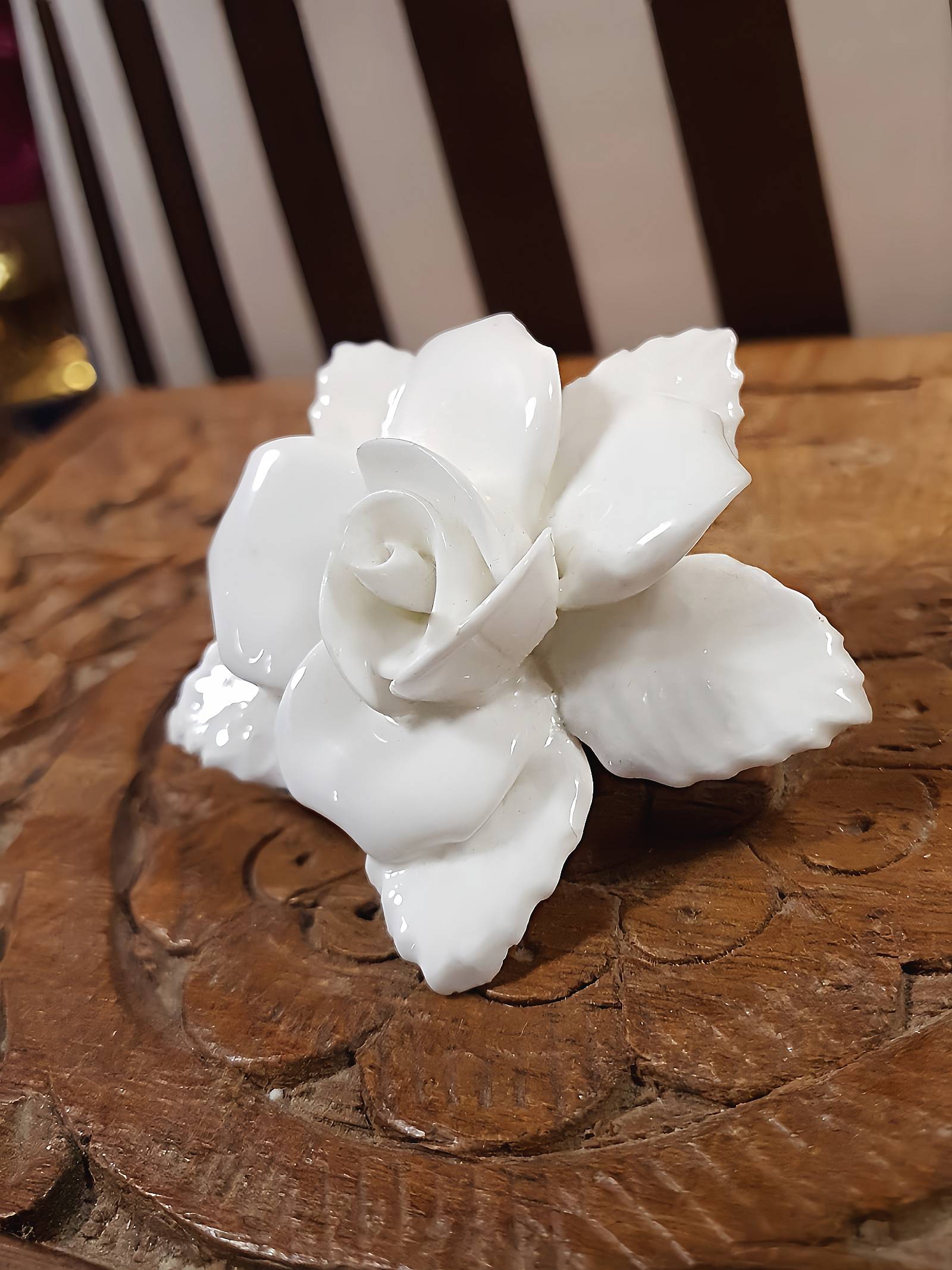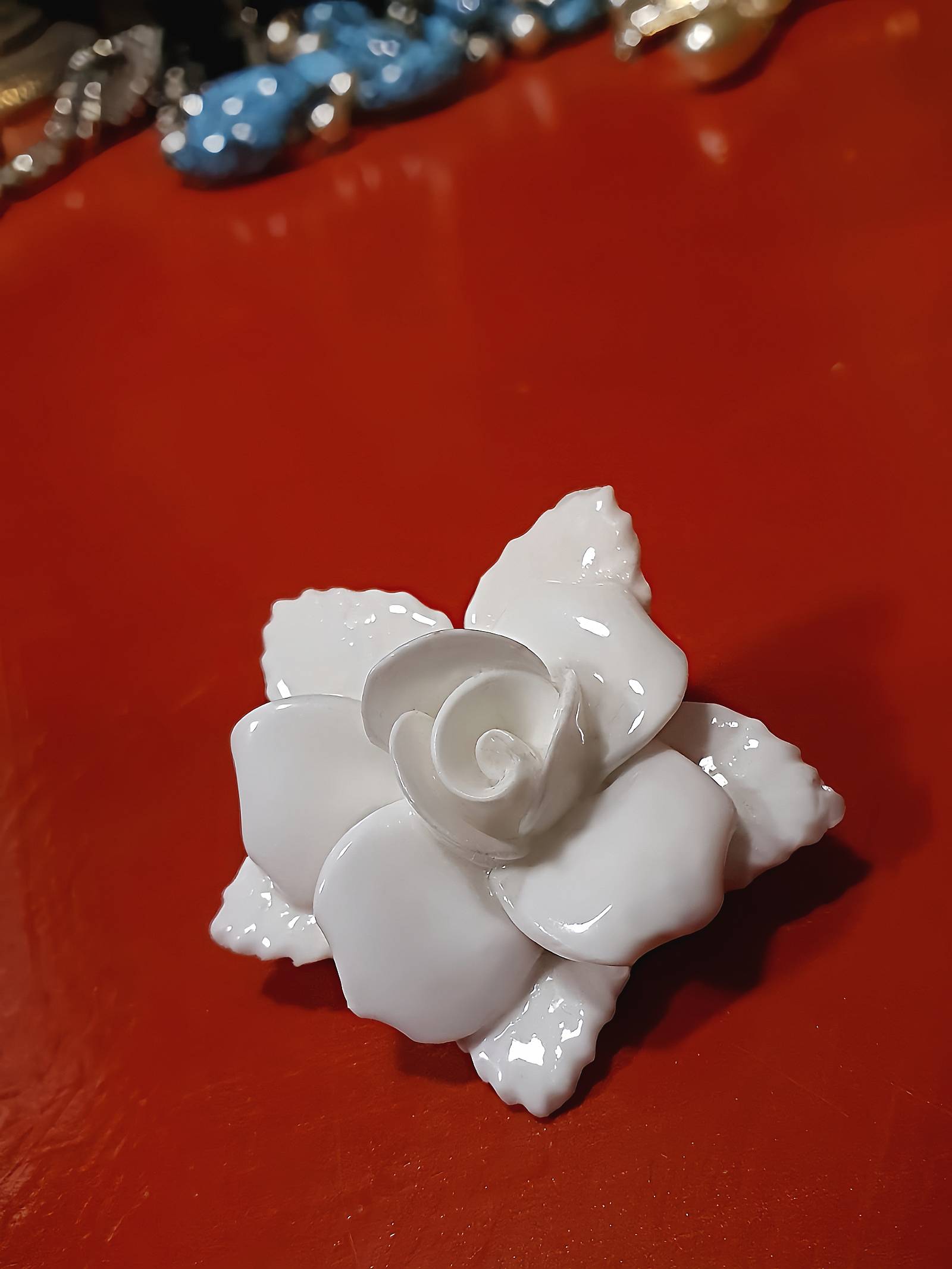 Vintage 1960s White Porcelain Rose Brooch Floral Flower English Ceramic