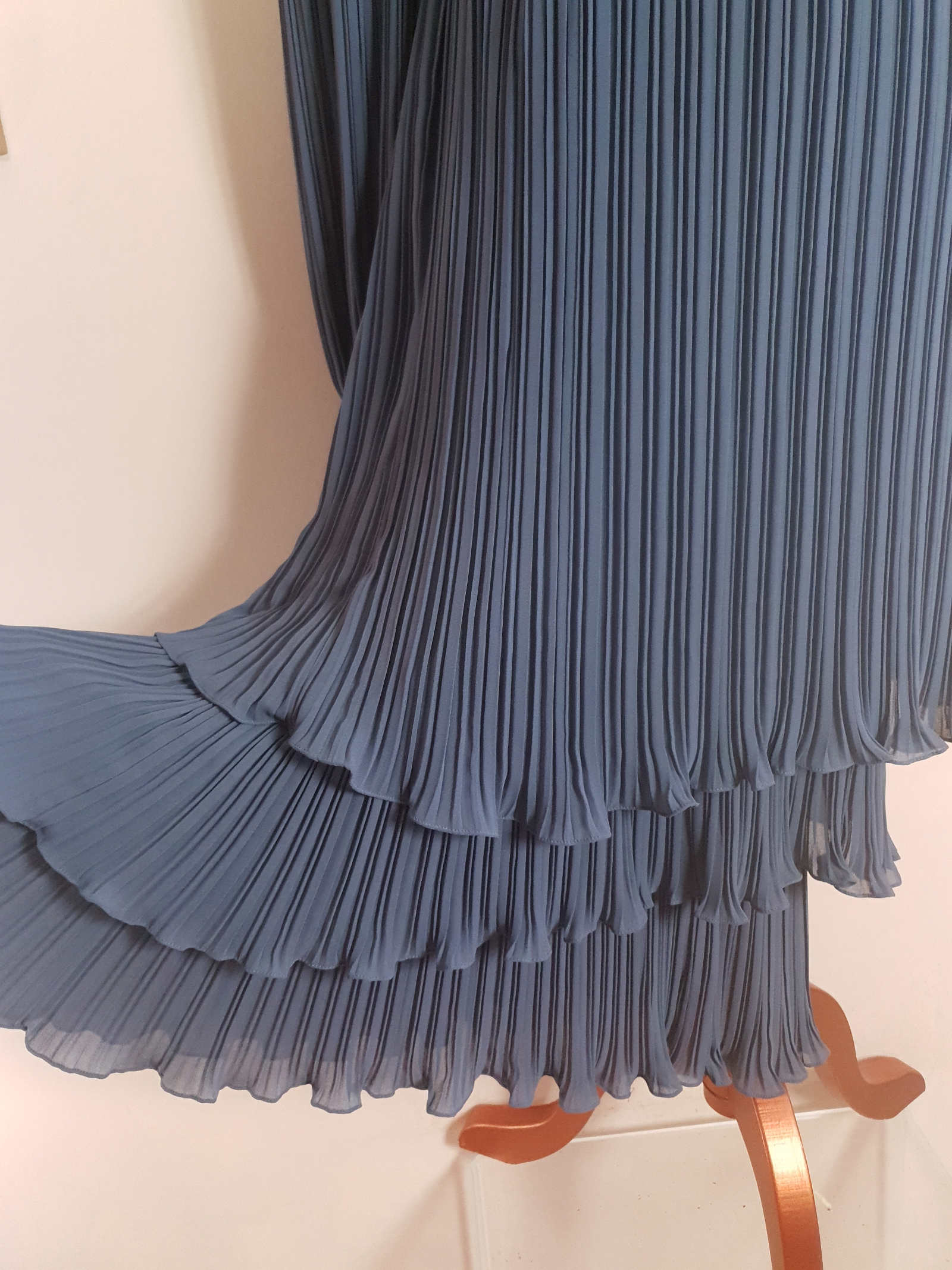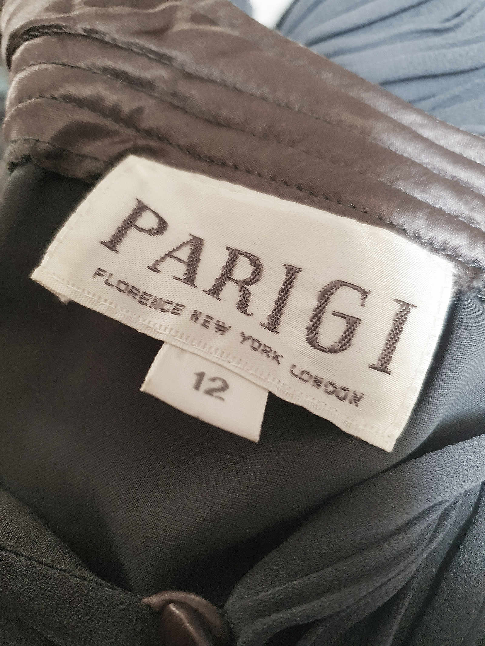 Vintage Grey Pleat Dress Parigi 1970s Chiffon Evening Party - Size 12 Midi