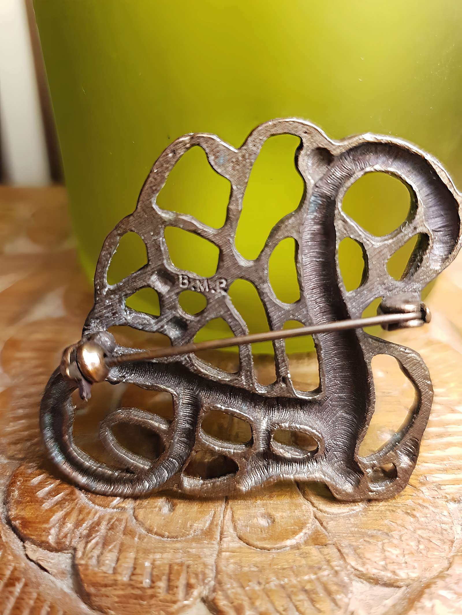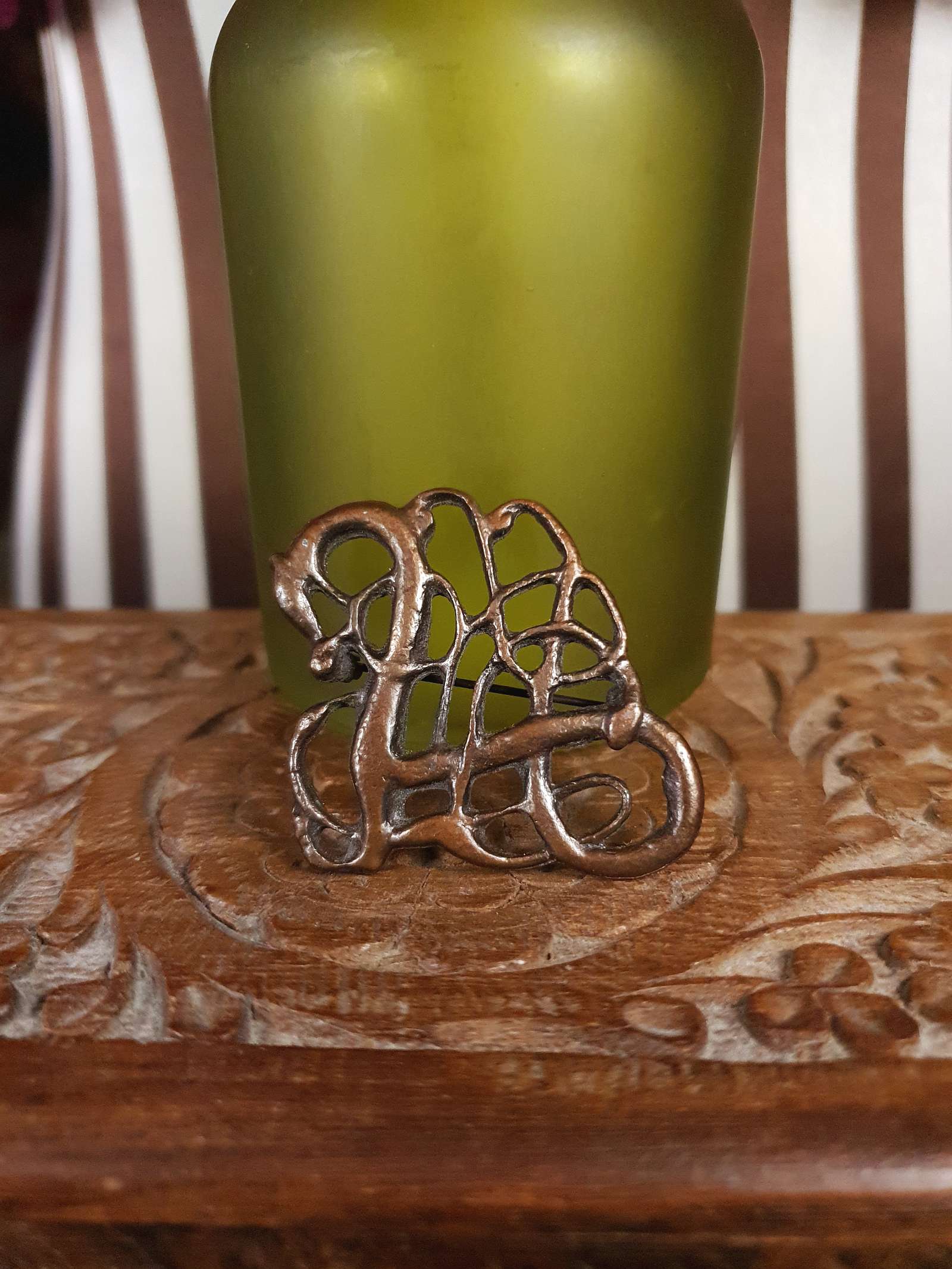 Vintage 1970s Viking Dragon Copper Brooch VTG Scandi Bronze British Museum Signed