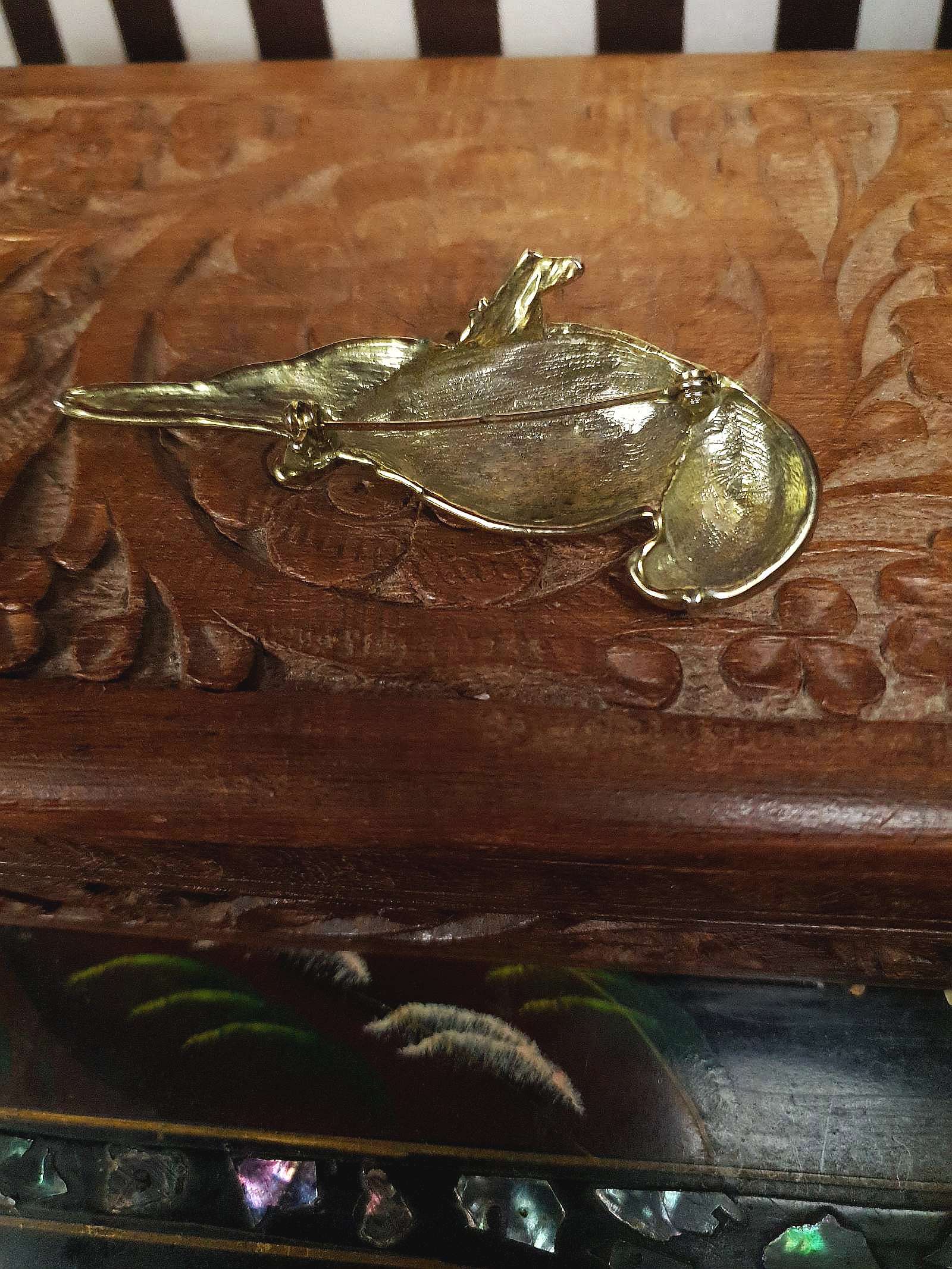Vintage Parrot Brooch Bird Rhinestone Green Blue Enamel Brass 1980s Large