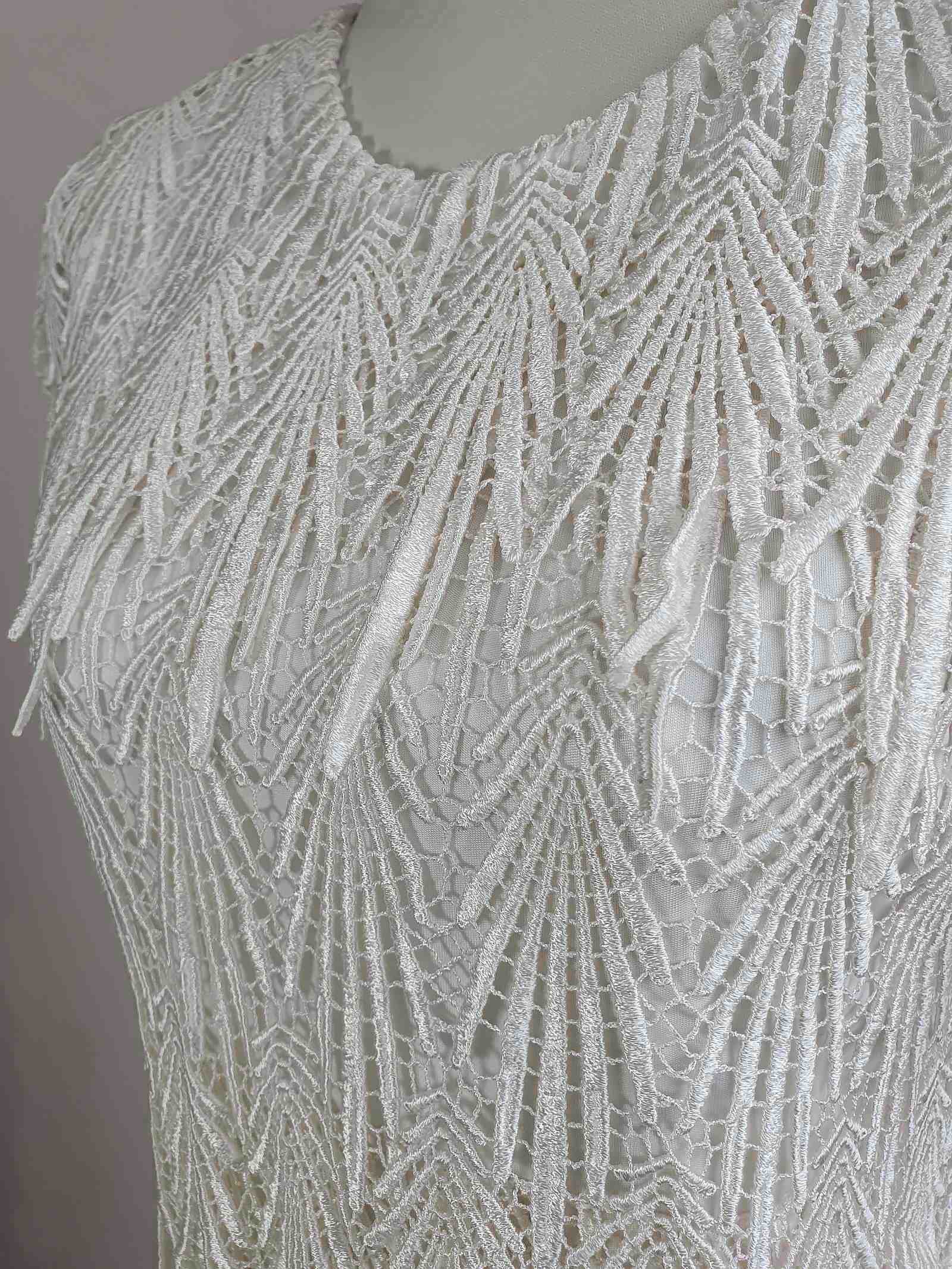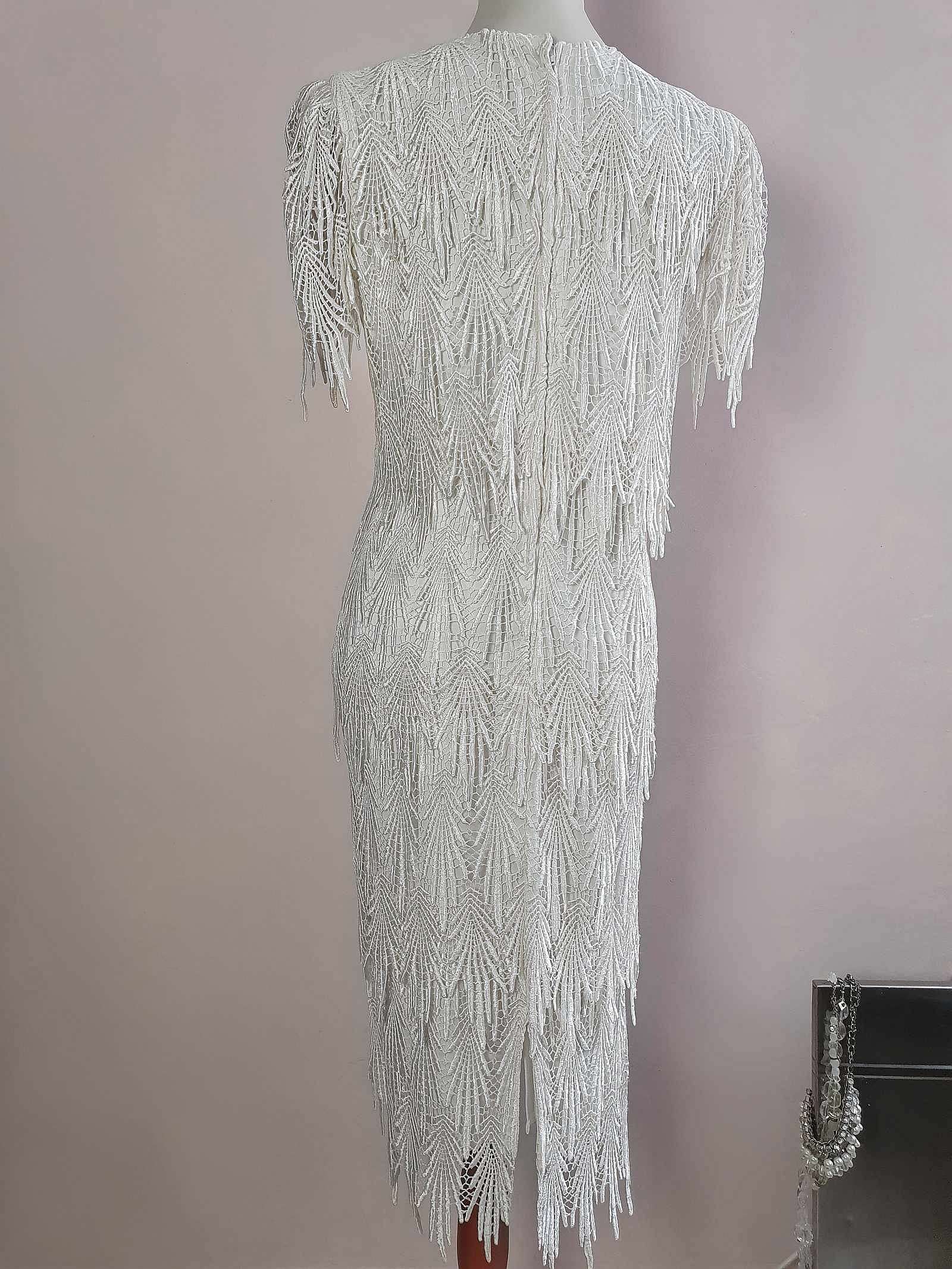 Vintage 1980s White Cocktail Dress Lace Party Evening Midi Wedding - Size 12