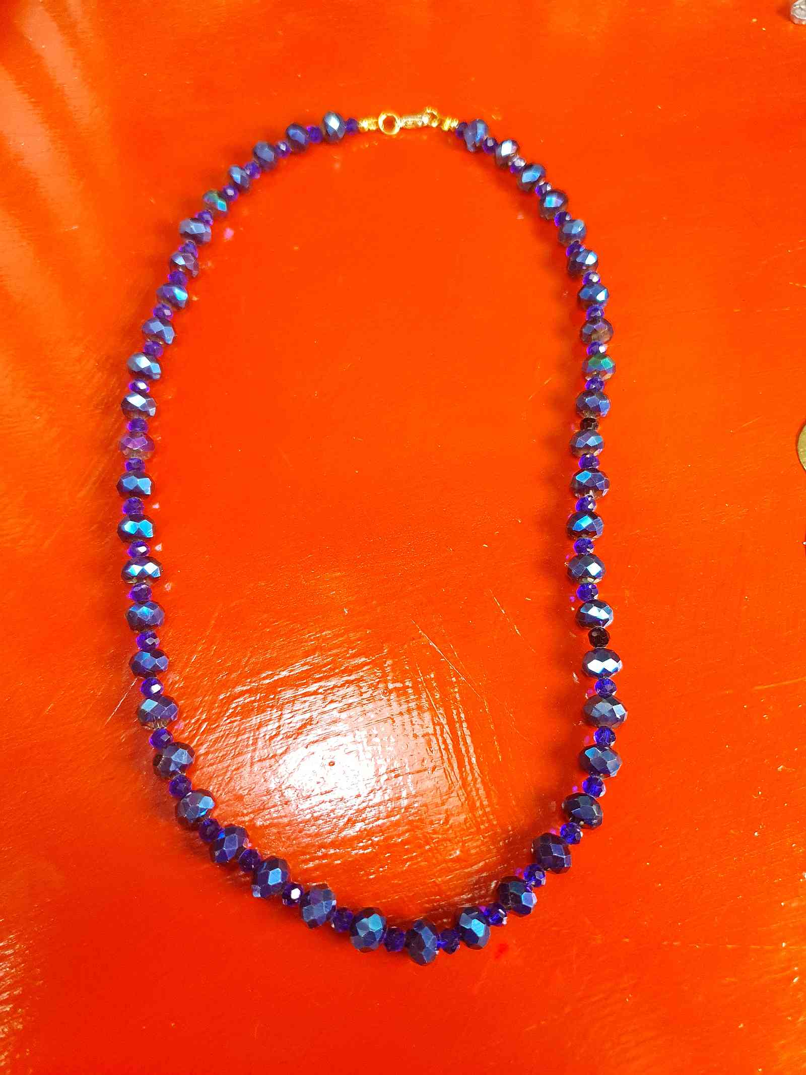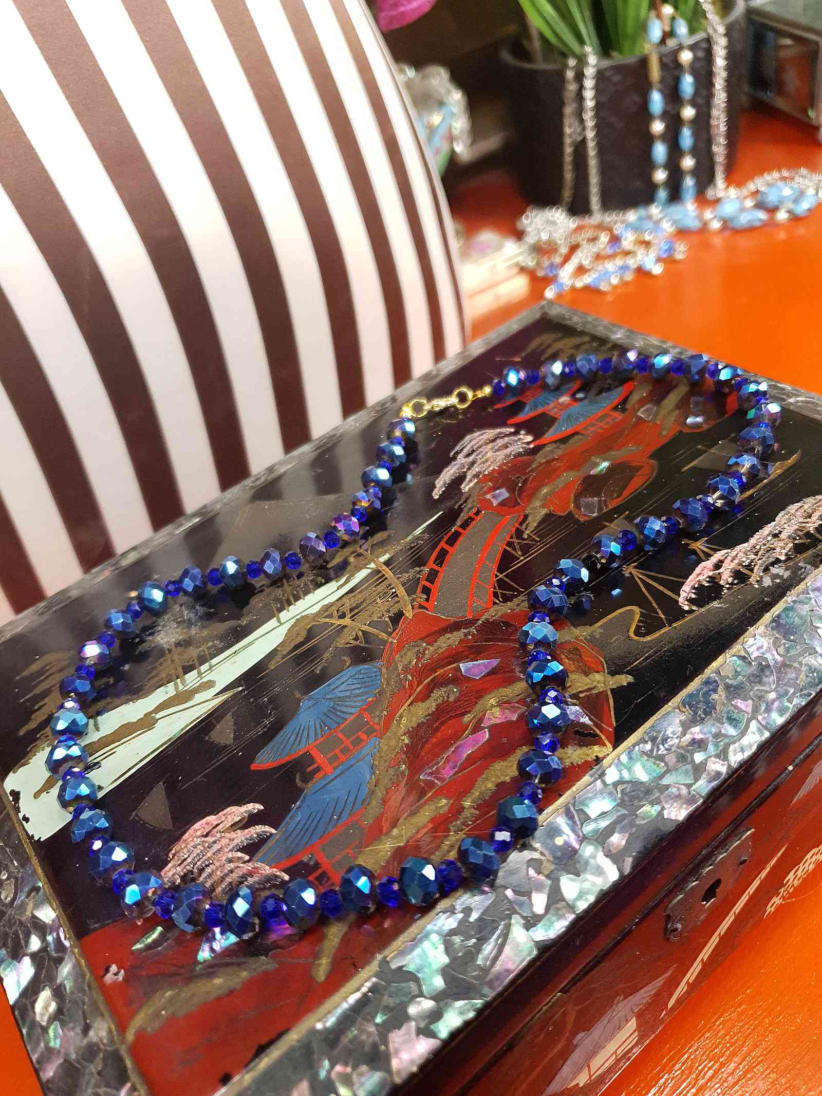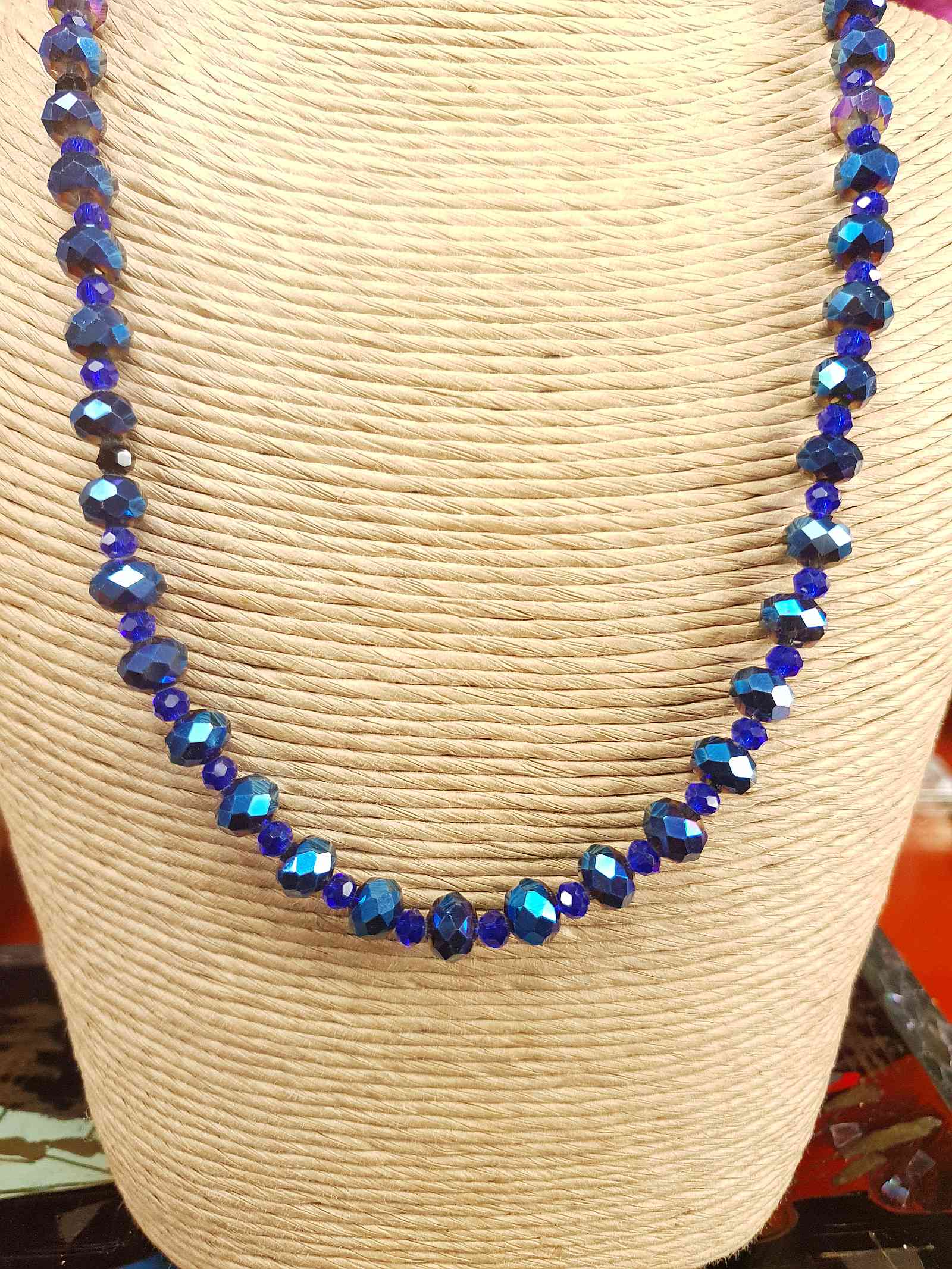 Vintage 90s Blue Aurora Borealis Glass Bead Necklace AB