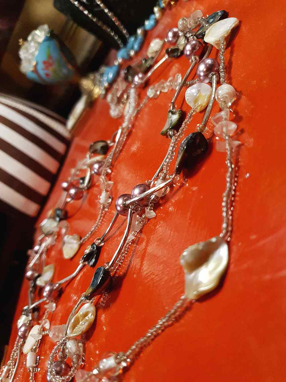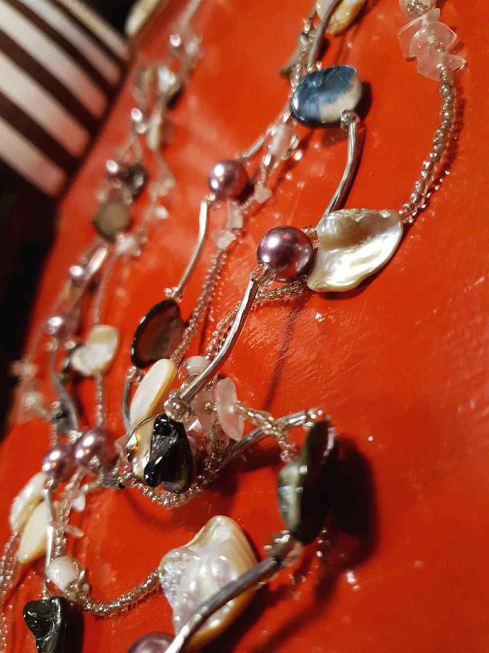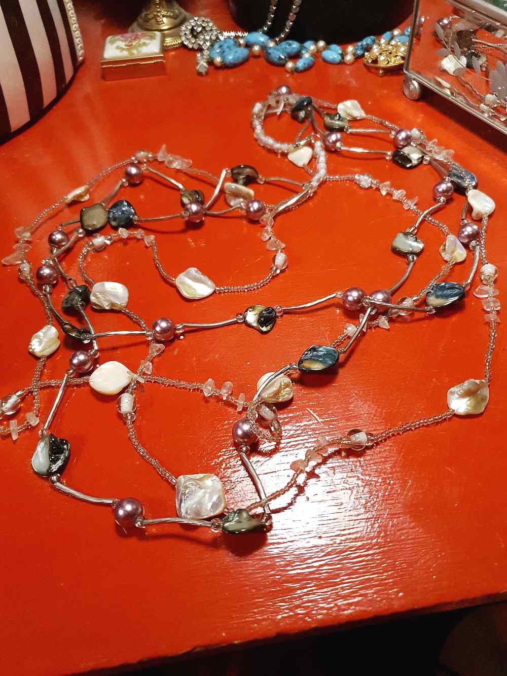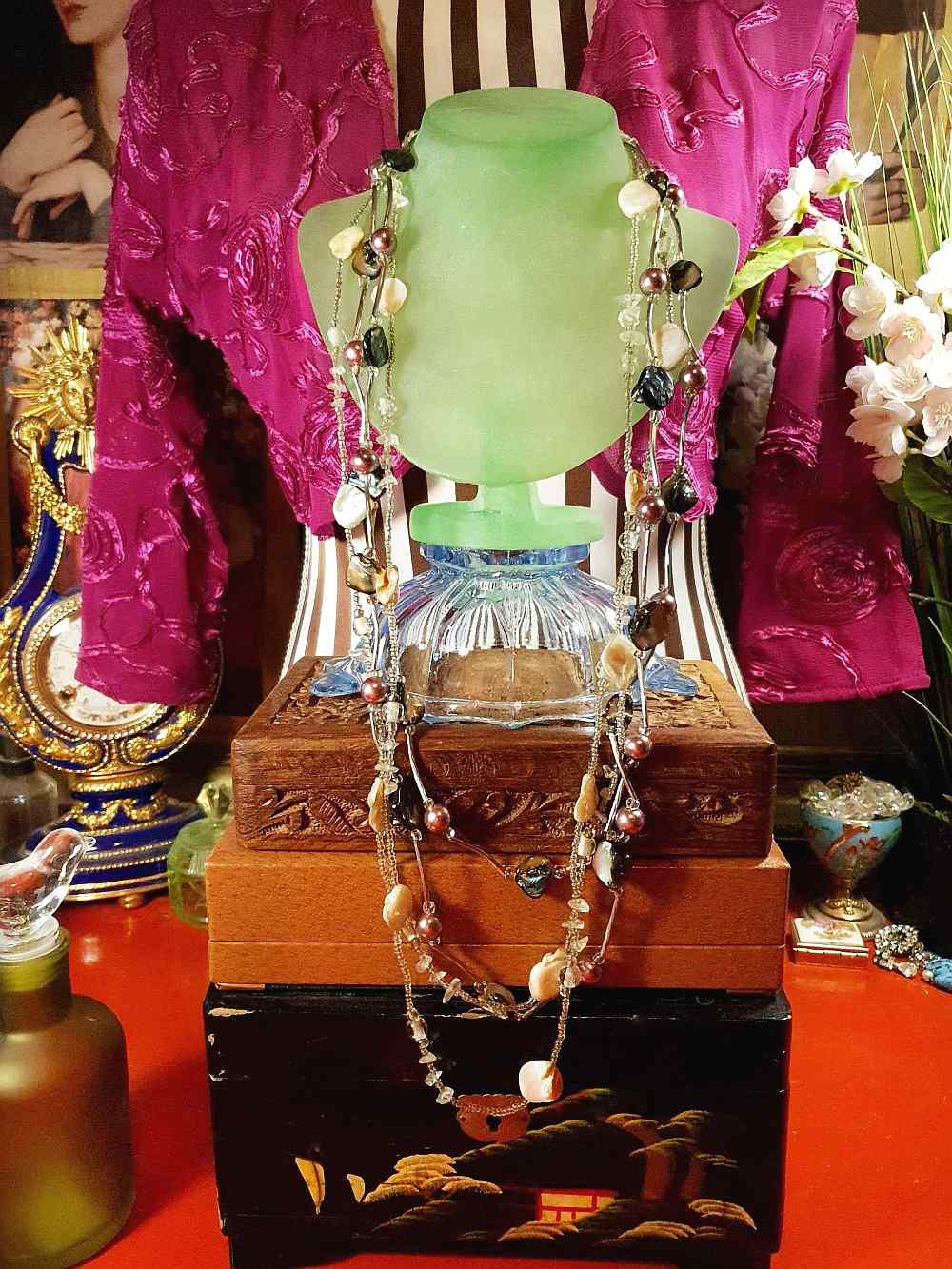 Vintage 90s Mother of Pearl Long Necklace Multi Tier Boho