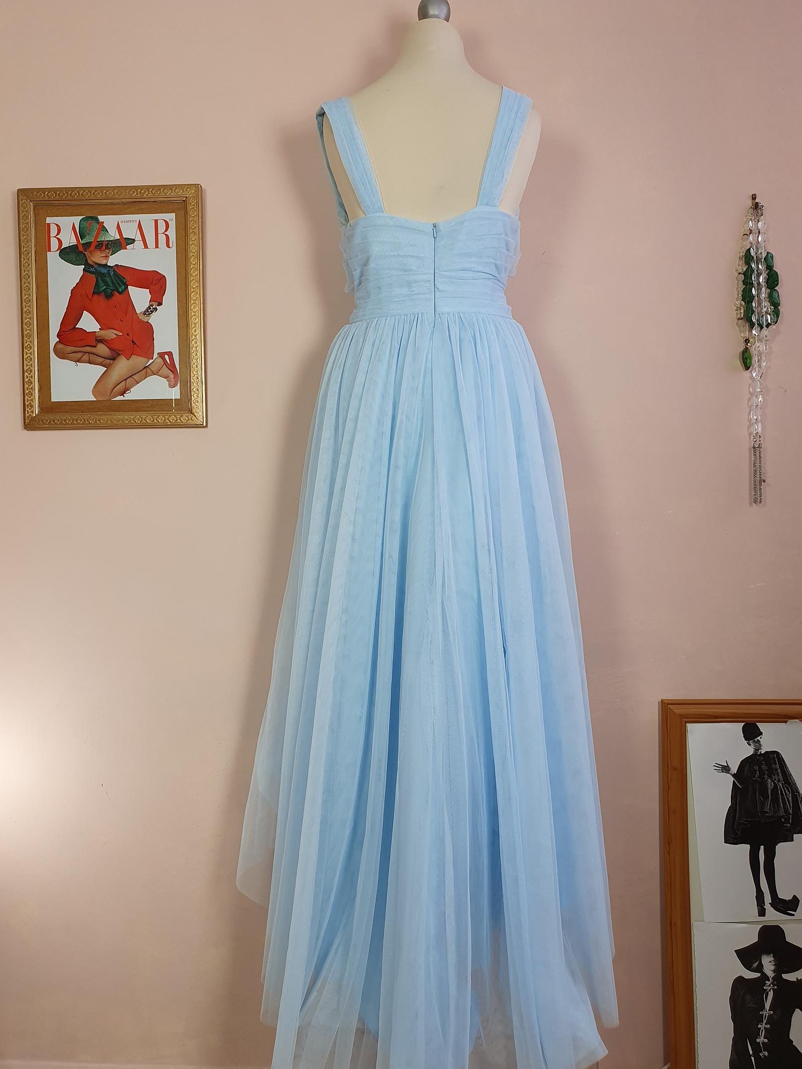 Vintage 90s Pale Blue Evening Dress Size 10 Tulle Prom Party Cocktail Gown Fit & Flare