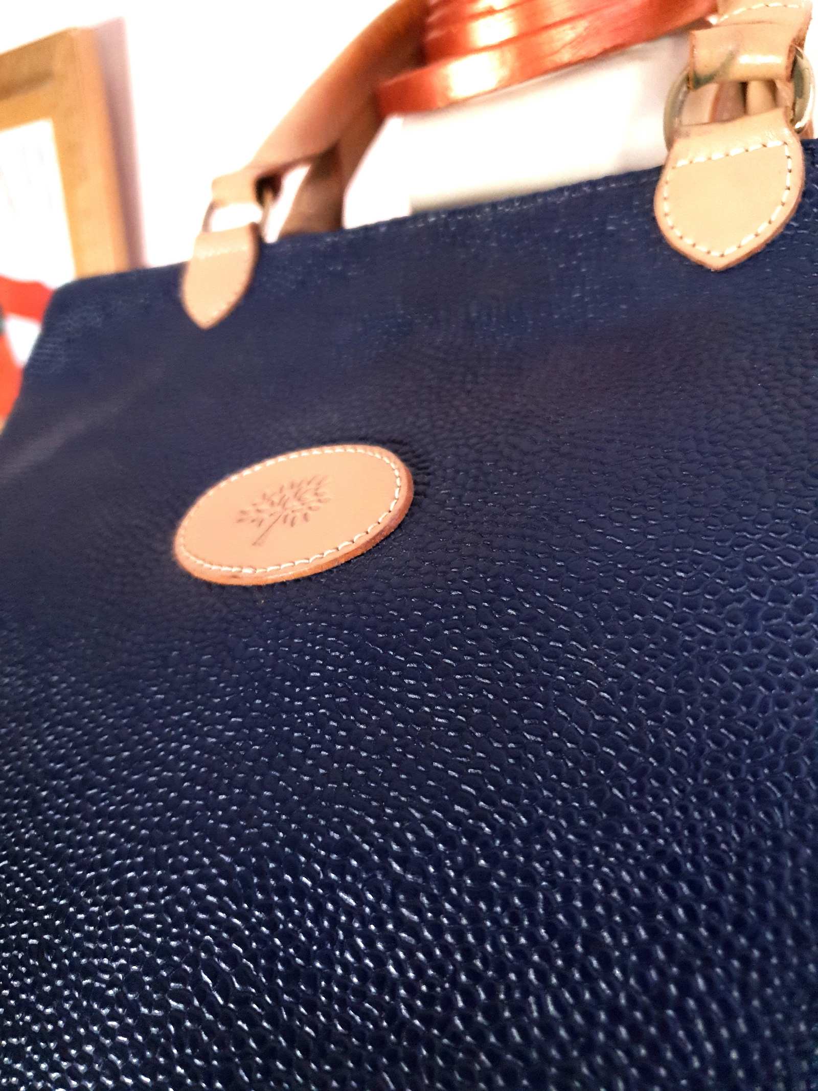 Vintage Mulberry Navy Blue Scotchgrain Hellier Carry Tote Handbag - English Classics