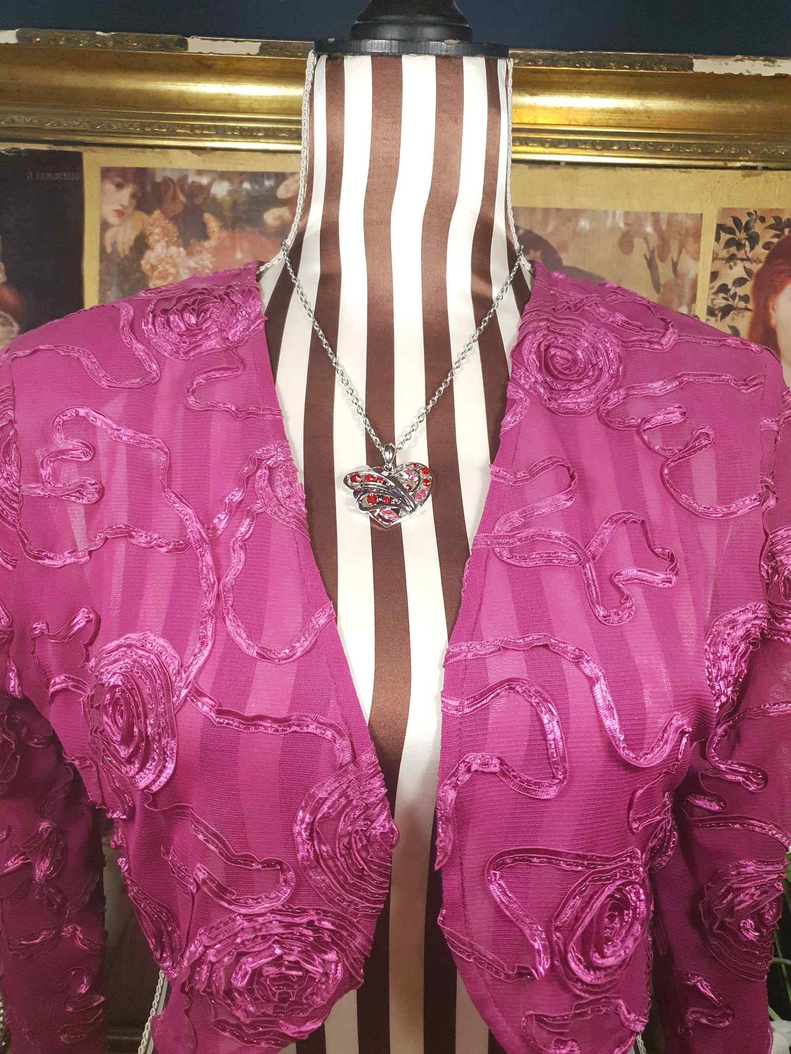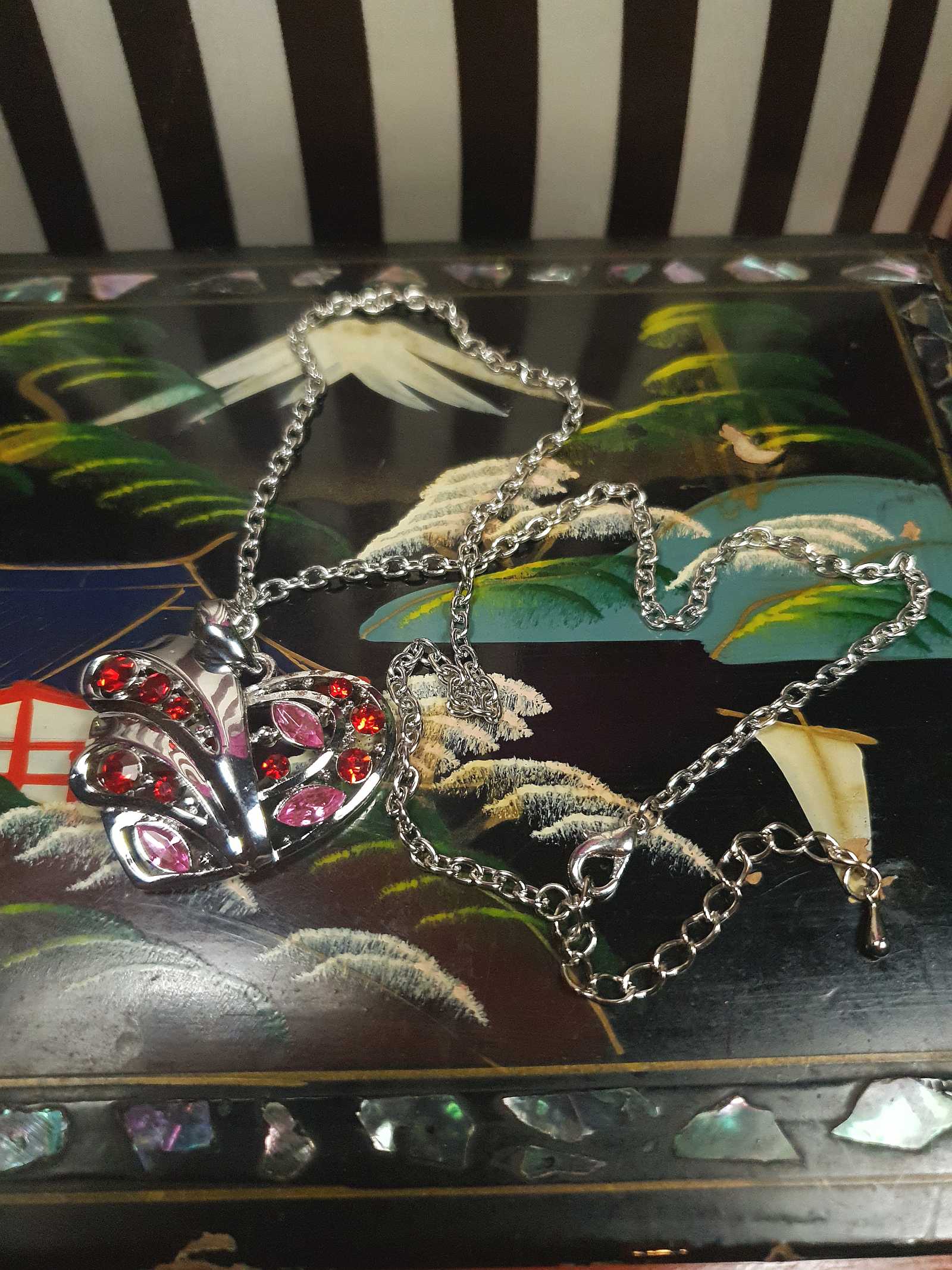 Vintage Red Pink Rhinestone Heart Pendant Necklace