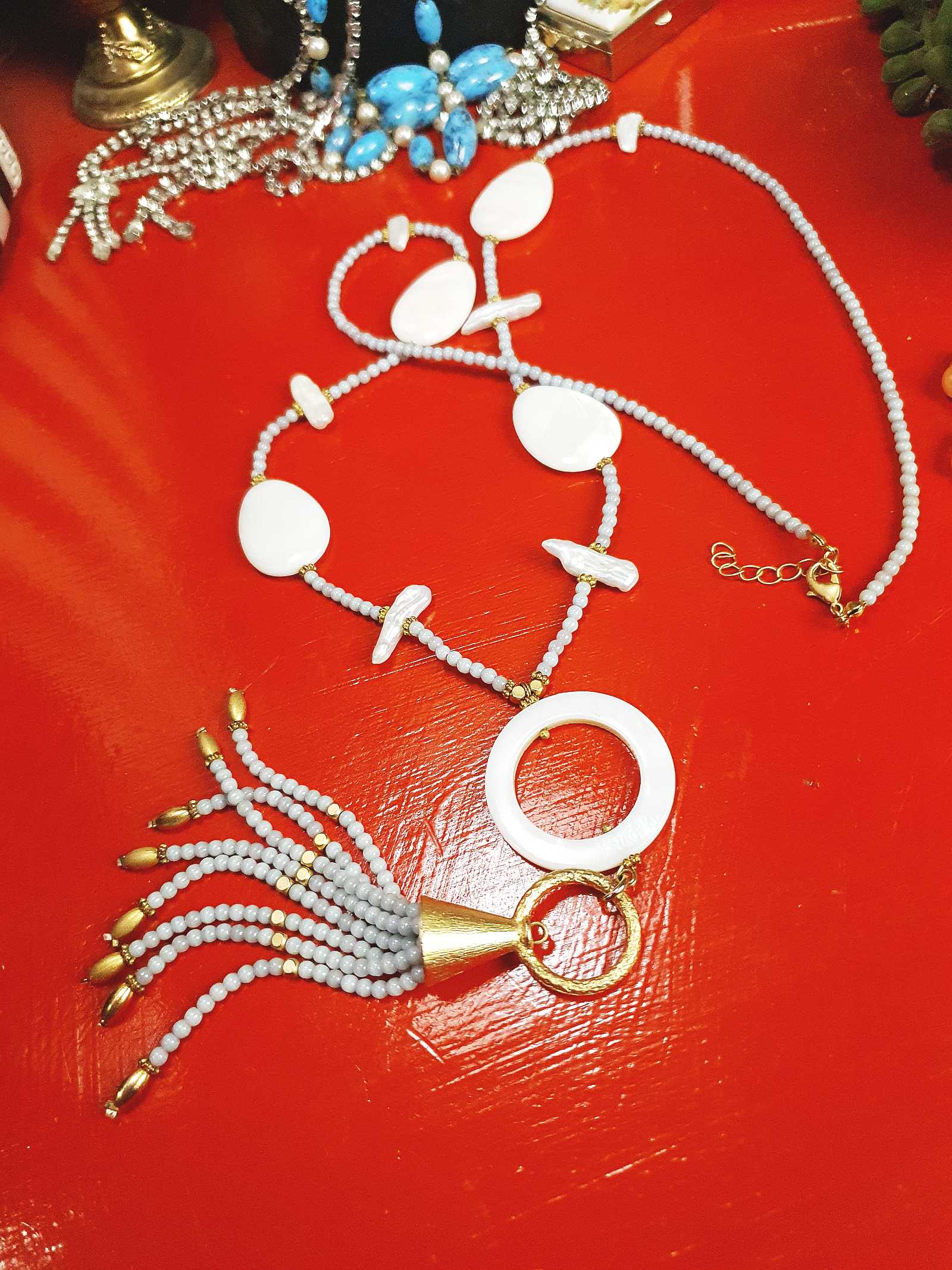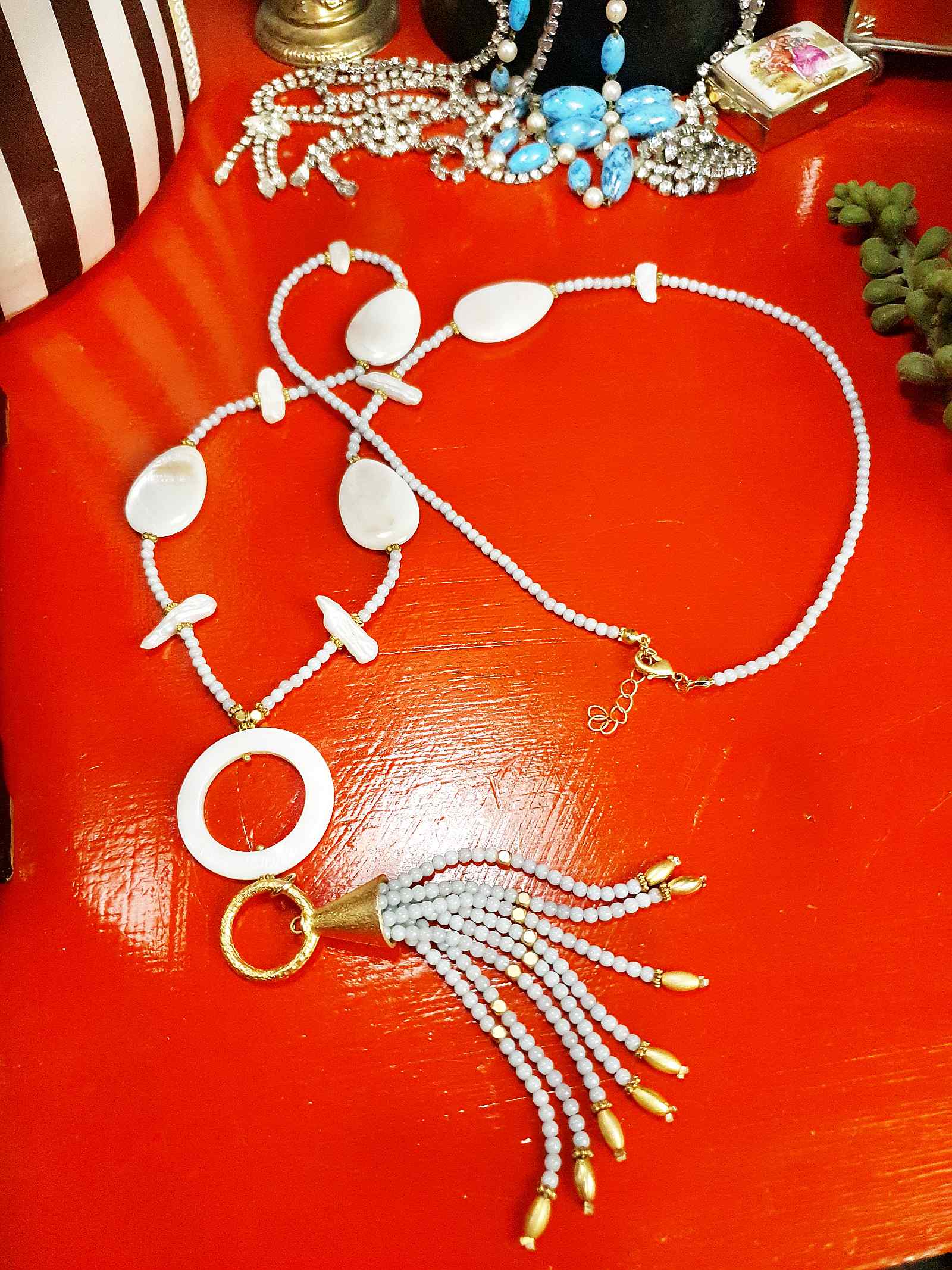 Vintage White Baroque Pearl Necklace Pendant Mother of Pearl Pale Blue Bead MOP